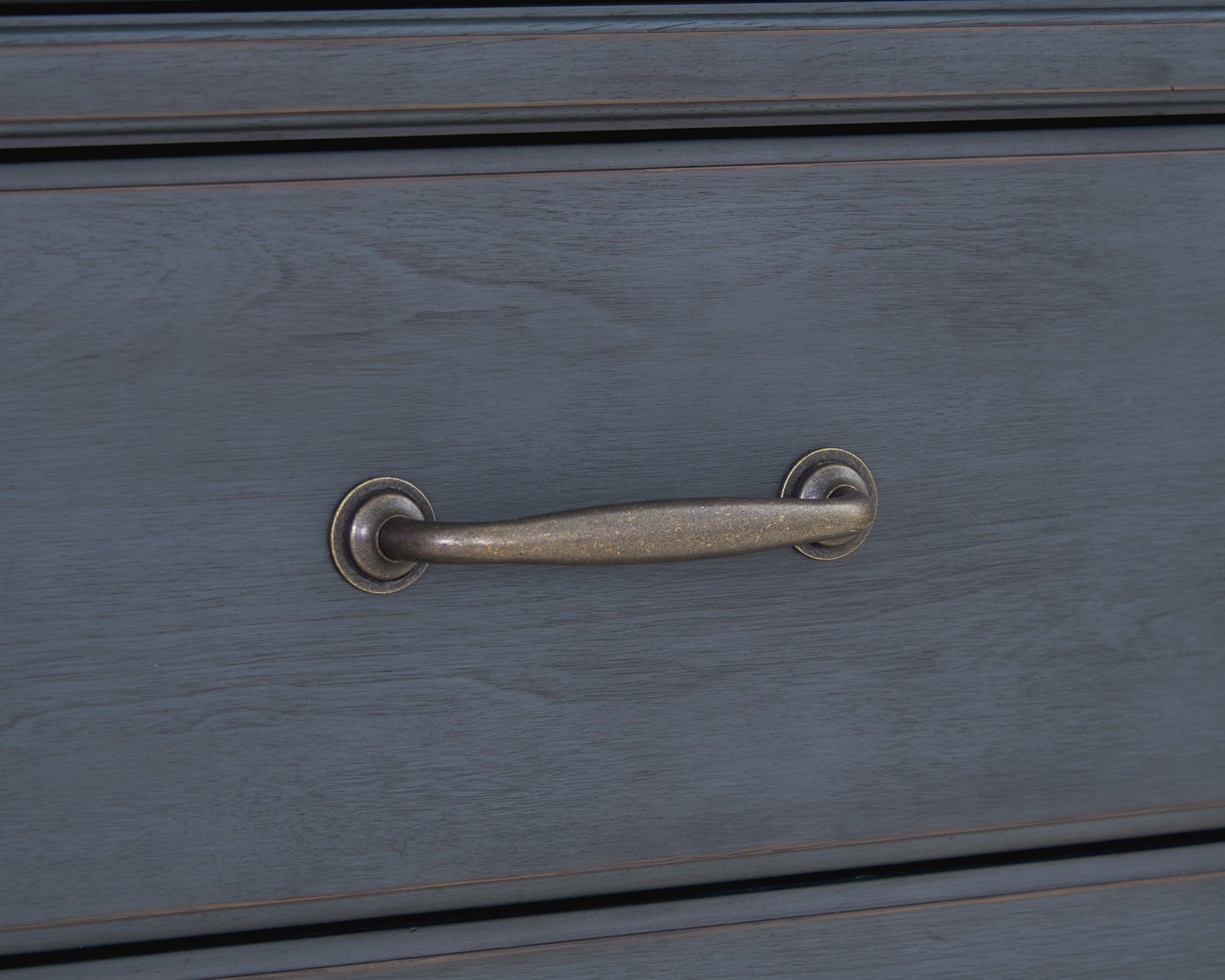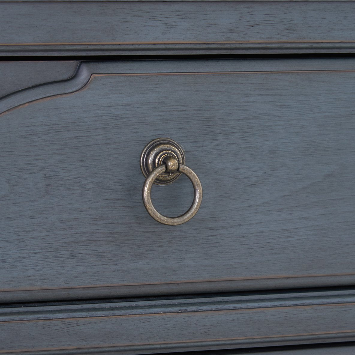 Add a touch of coastal charm and heirloom-quality craftsmanship to your bedroom with this fully assembled 5-drawer chest. Its subtle corduroy blue finish and antique pewter hardware create a relaxed yet refined look, while durable construction and practical details make it a versatile storage piece for clothing, linens, and accessories.