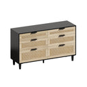 Bring natural texture and practical storage to your home with this handwoven rattan dresser. Its warm, natural finish and clean-lined silhouette suit coastal, bohemian, and modern farmhouse interiors while offering six spacious drawers for clothing, linens, and everyday essentials. Built with sturdy wood legs and metal handles, this dresser balances organic style with functional durability — ideal for bedrooms, hallways, or living rooms.