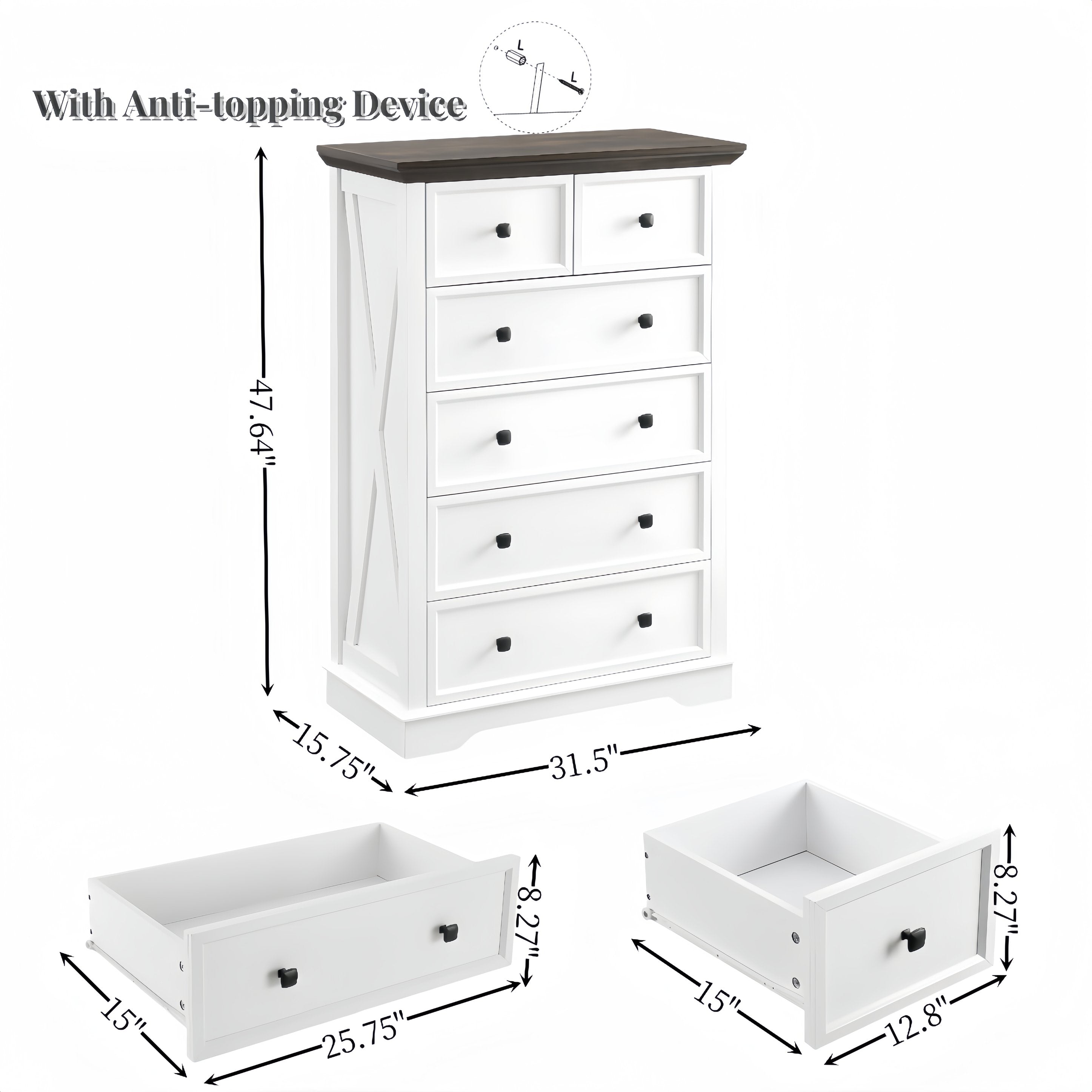 Bring order and style to your bedroom or living area with this sleek 6-drawer tall chest. Its modern wood-grain finish complements contemporary décor while offering practical, quiet storage for clothing, linens, and everyday essentials. Built for safety and smooth operation, this compact dresser maximizes vertical space without sacrificing stability or aesthetics.