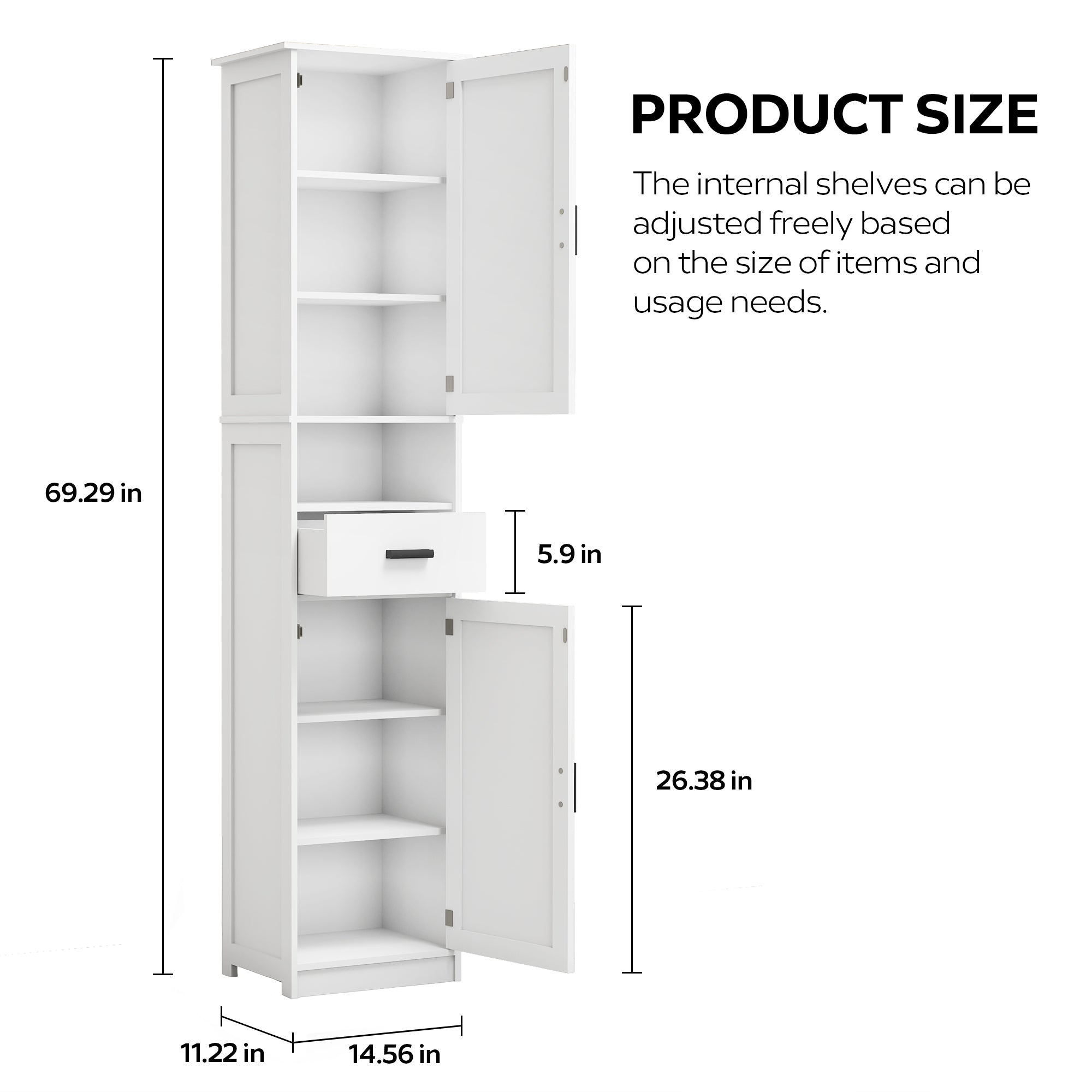 - 【Large Storage Space】This tall storage cabinet cleverly combines adjustable shelf space and hidden cabinets to provide ample storage space. It has 2 doors 1 drawer 7 storage spaces. The upper cabinet can store your beauty products, the lower cabinet can store heavy objects and sundries