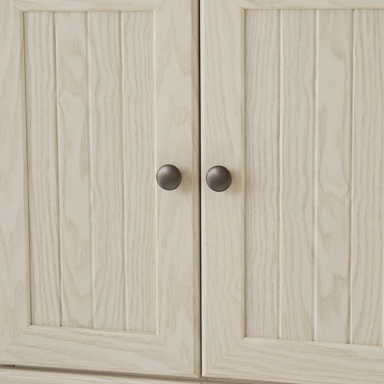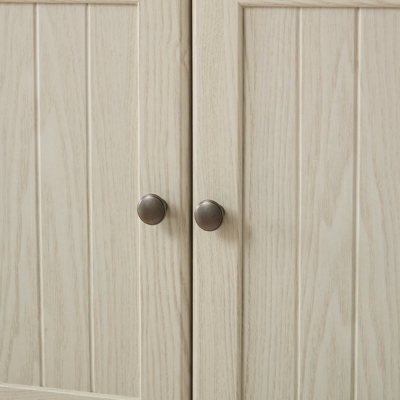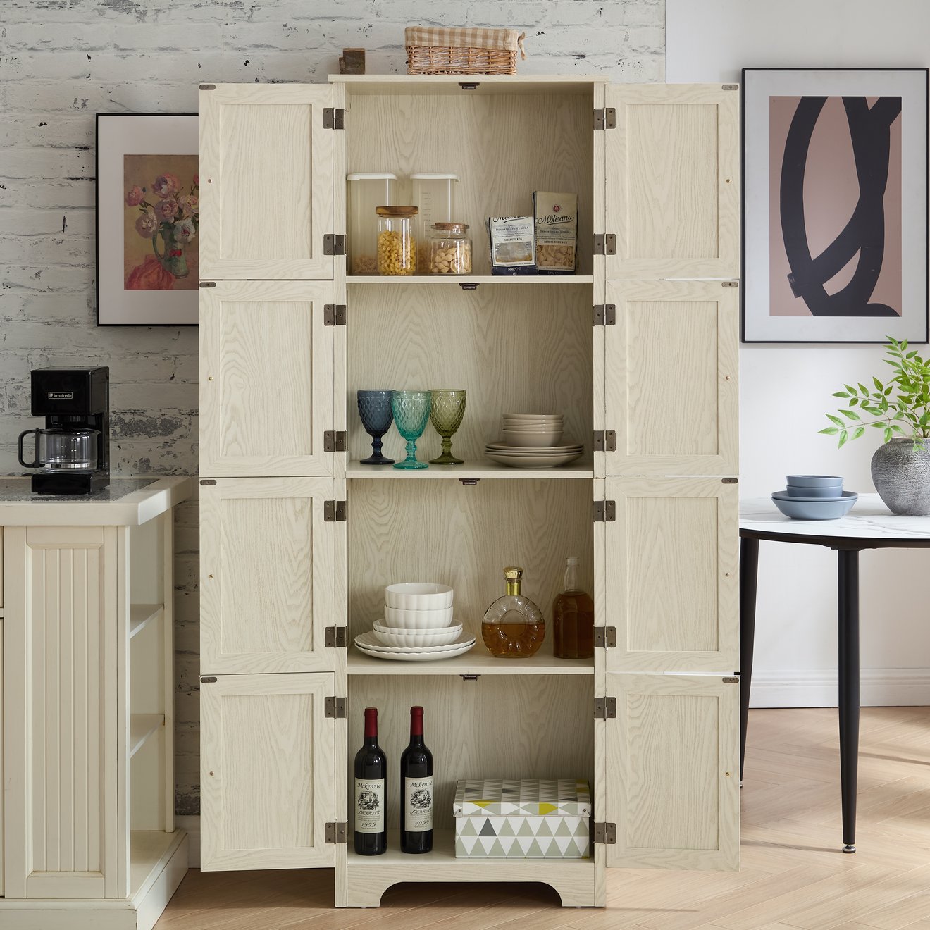 - Capacity & layout: Eight doors concealing four internal shelves provide segmented storage for dishes, linens, books, office supplies, or seasonal décor.