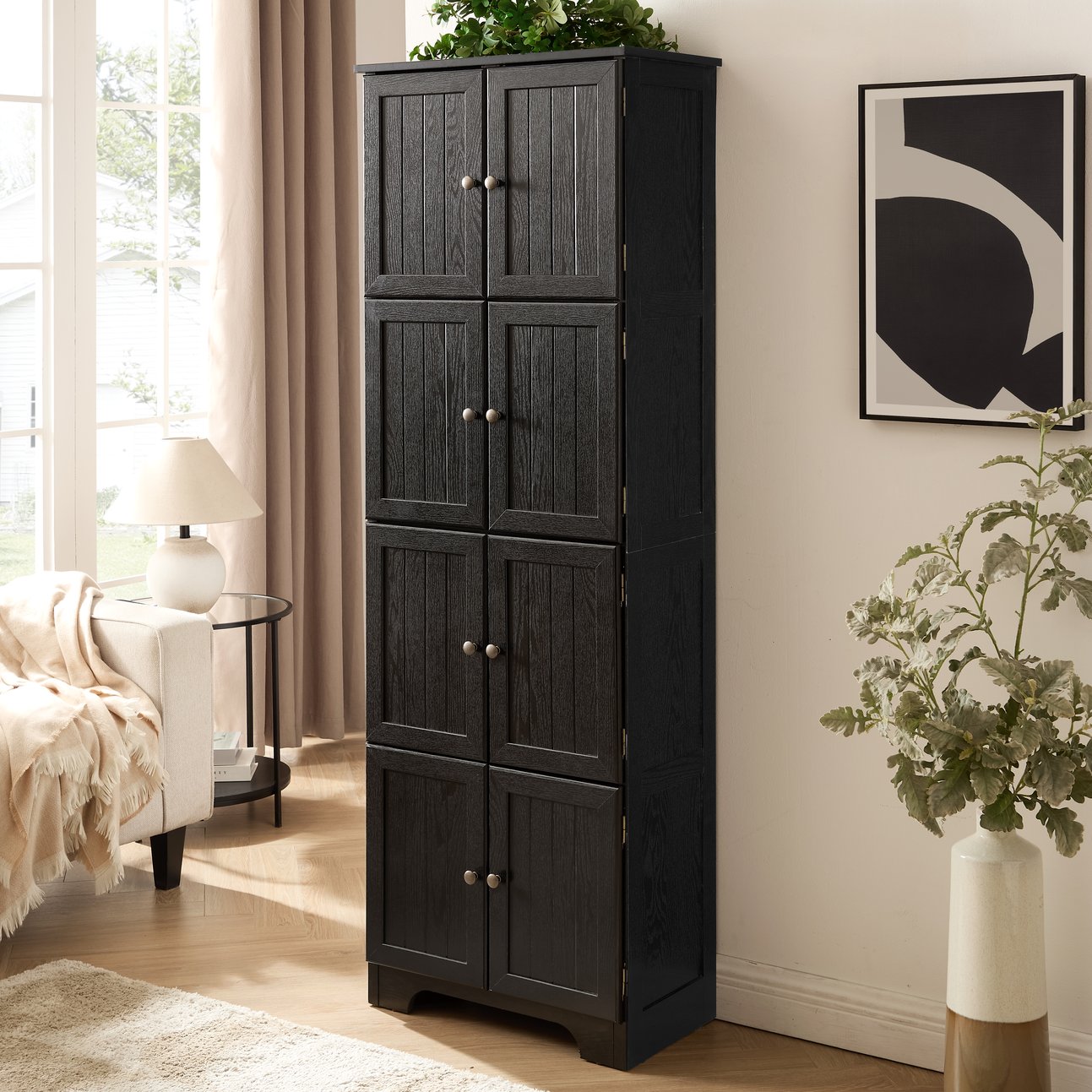 Transform clutter into calm with this elegant 8‑door tall storage cabinet. Designed for versatile use throughout the home — from entryway and living room to dining area, kitchen, or office — it combines generous storage capacity with a refined oak finish and vintage-inspired metal hardware. The cabinet’s smooth, easy‑care surfaces and thoughtfully arranged shelves help keep belongings organized and accessible while enhancing your decor.