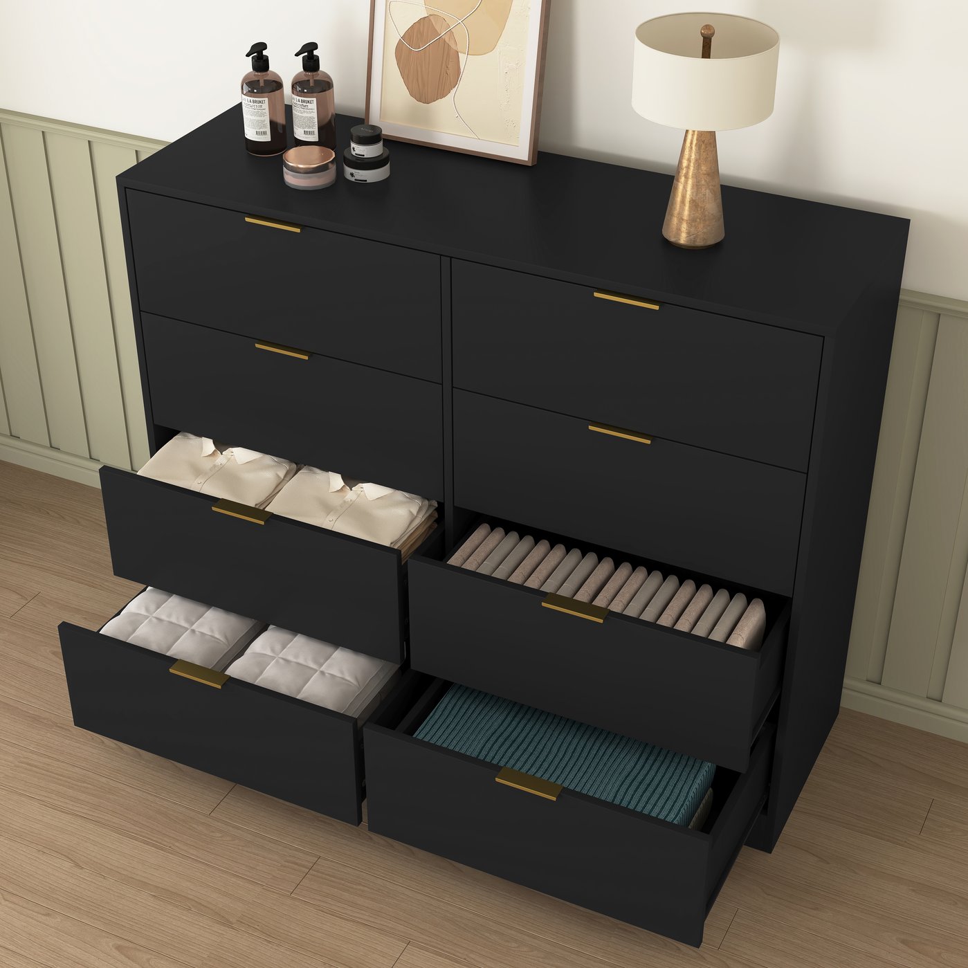 - 【Handy design】 Dresser with 8 Drawers get painstaking treatment for smooth gliding and easy use. Clothing and socks can be stack to conserve space.
