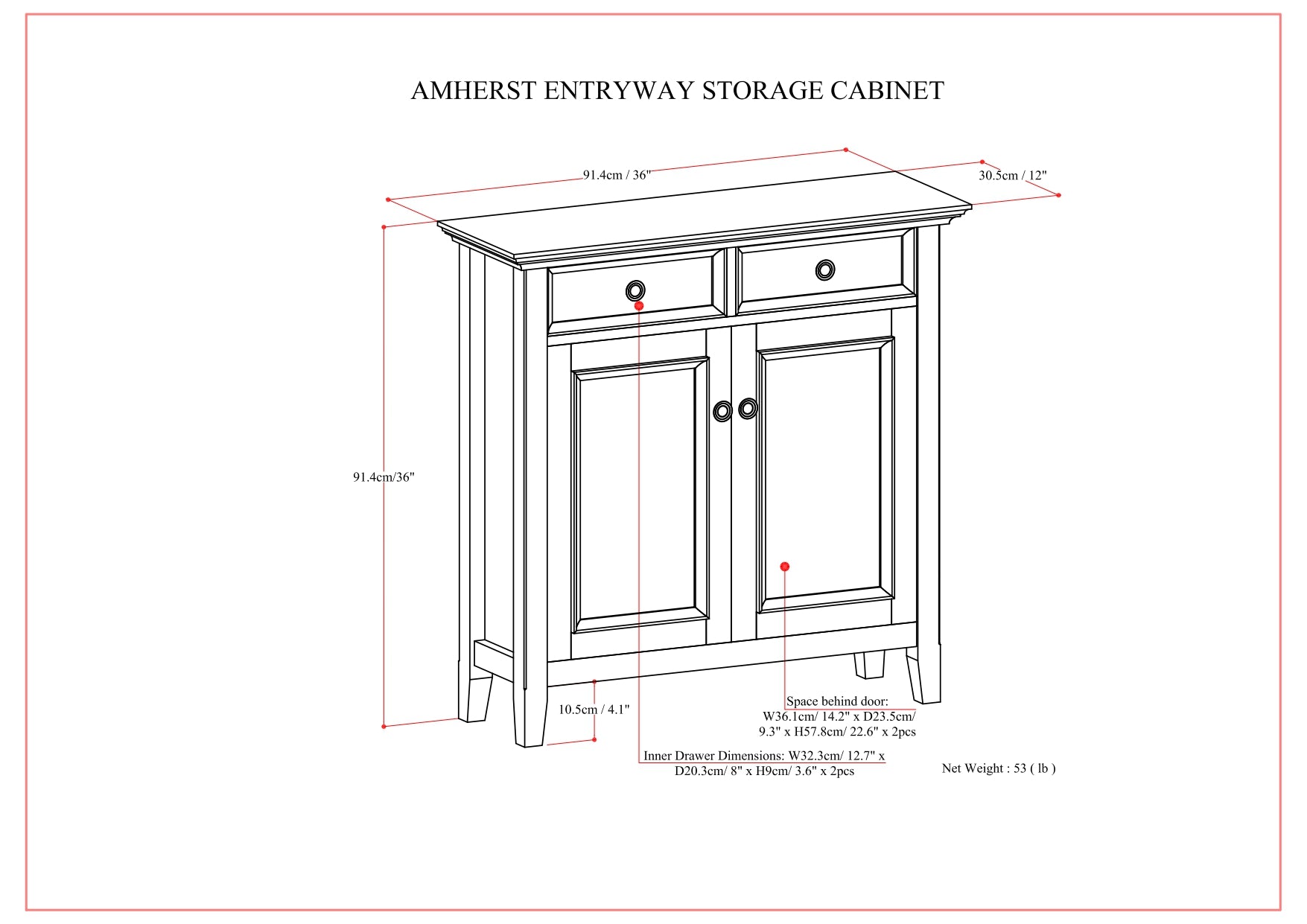 Bring warmth and organization to your entryway with this handcrafted Amherst storage cabinet in Hickory Brown. Built from high-quality solid wood and finished with care, it combines classic transitional styling with practical storage solutions—perfect for corralling everyday essentials like keys, gloves, mail, and more while enhancing your living room, hallway, bedroom, or office.