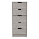 Add smart, space-saving storage to your room with this modern five-drawer tall dresser in grey. Designed for everyday use, it combines a smooth pull-out system with a slim footprint to keep clothes, accessories, and small items organized without taking over your space.