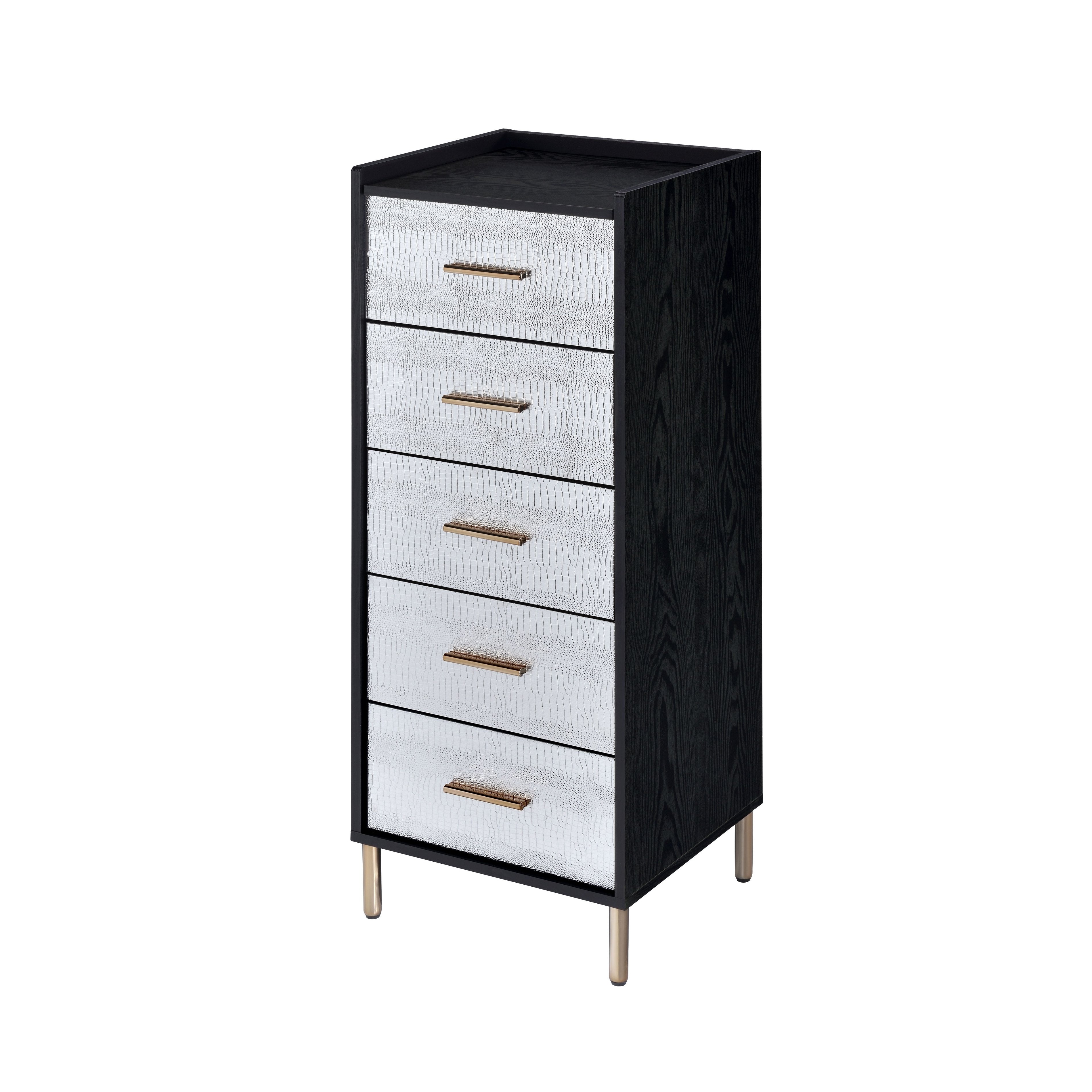 Elevate your daily routine with a refined jewelry armoire that blends timeless styling with thoughtful organization. This black and silver piece keeps necklaces, rings, earrings, and bracelets neatly separated and protected while the lift-top compartment and built-in mirror create a convenient dressing station for effortless accessorizing.