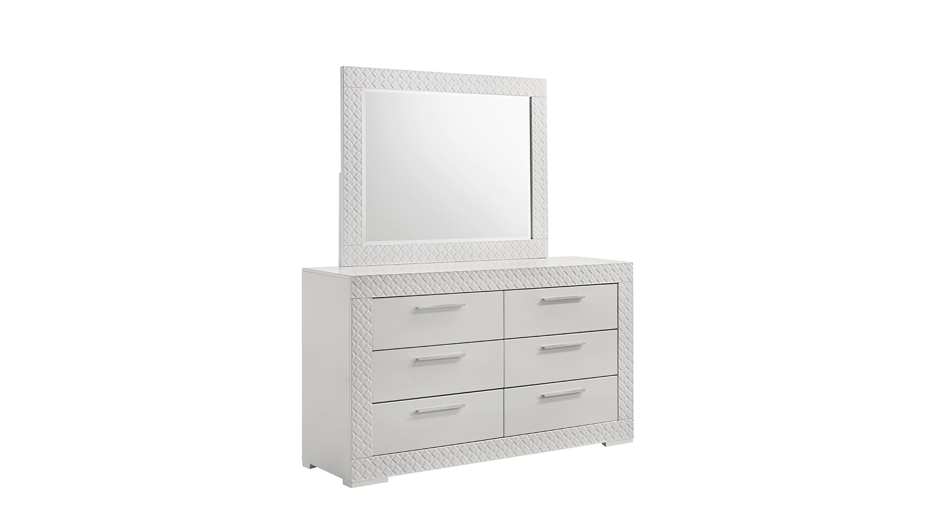 - Elegant high-end lacquer white finish complemented by quilted detailing for a stylish, modern look