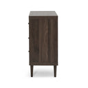 - MID-CENTURY MODERN STYLE: With sleek tapered legs and a stunning wood look, this chest of drawers uses new materials to reimagine a traditional design.