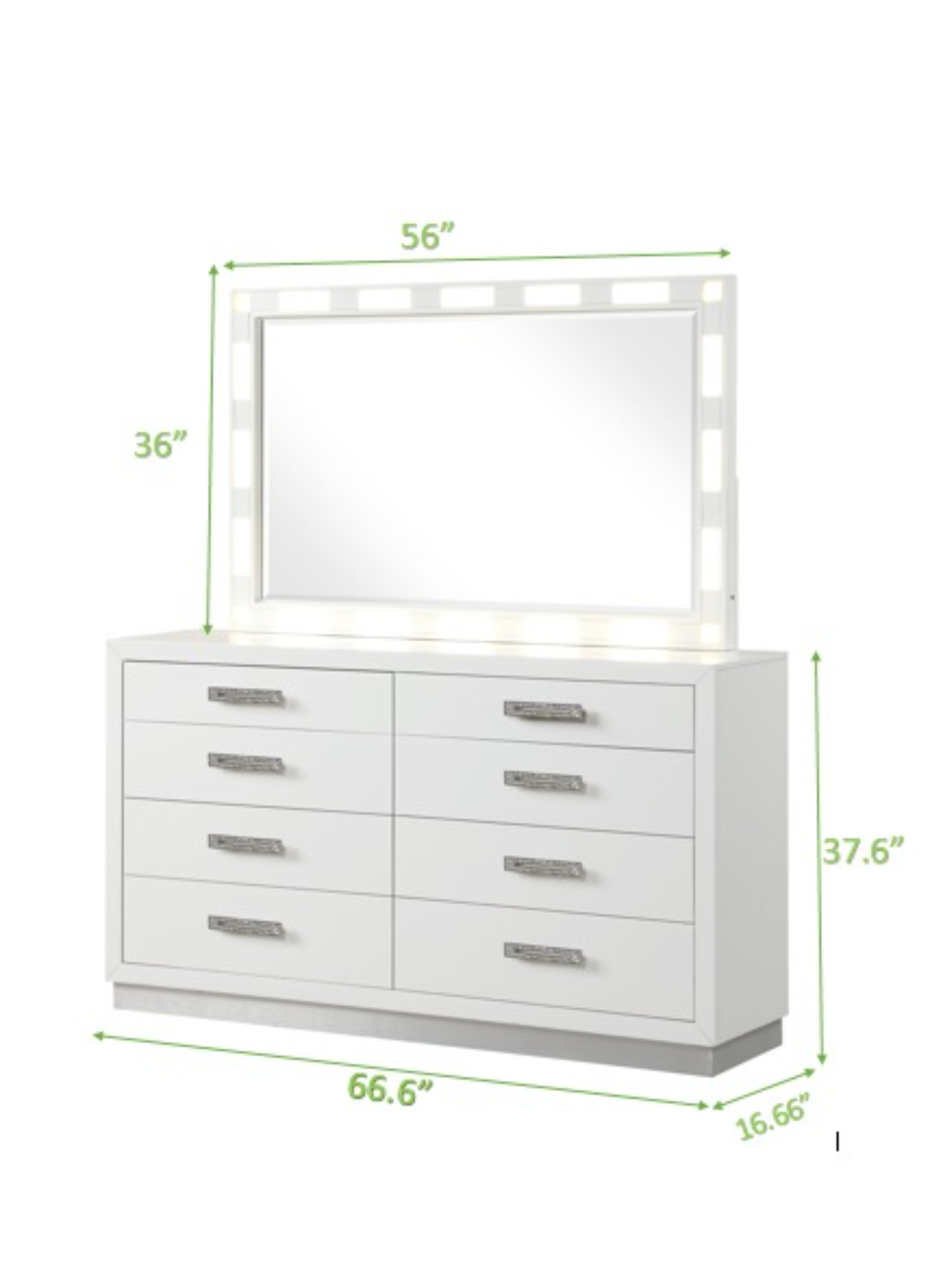 Elevate your bedroom with the Coco dresser — a refined blend of modern design and practical storage. Built from quality wood and finished in a soft milky white, this piece brings a bright, elegant look while offering generous organization. Sparkling diamond-style crystal hardware adds a subtle glamour that complements both contemporary and transitional interiors.