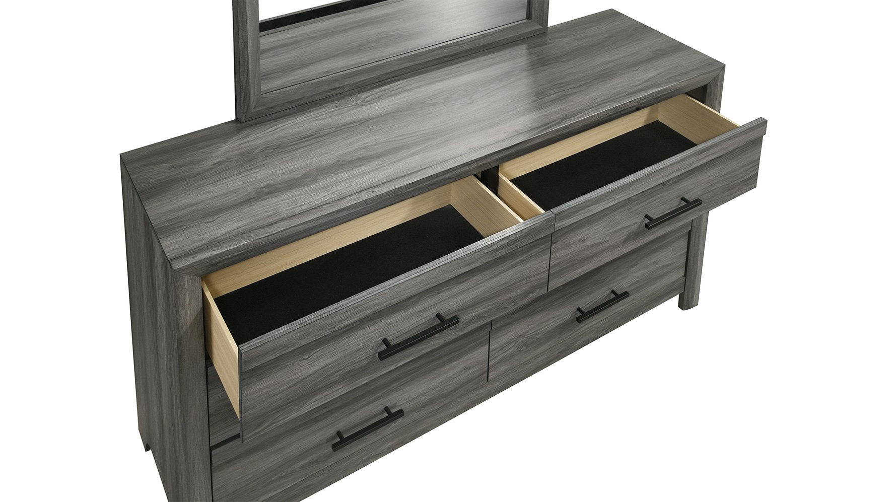 Refresh your bedroom with a modern, streamlined 6-drawer dresser that pairs contemporary form with practical storage. Thoughtfully crafted in a neutral gray finish, this piece delivers clean lines and subtle detailing to complement a variety of decor styles while keeping clothing and accessories neatly organized.