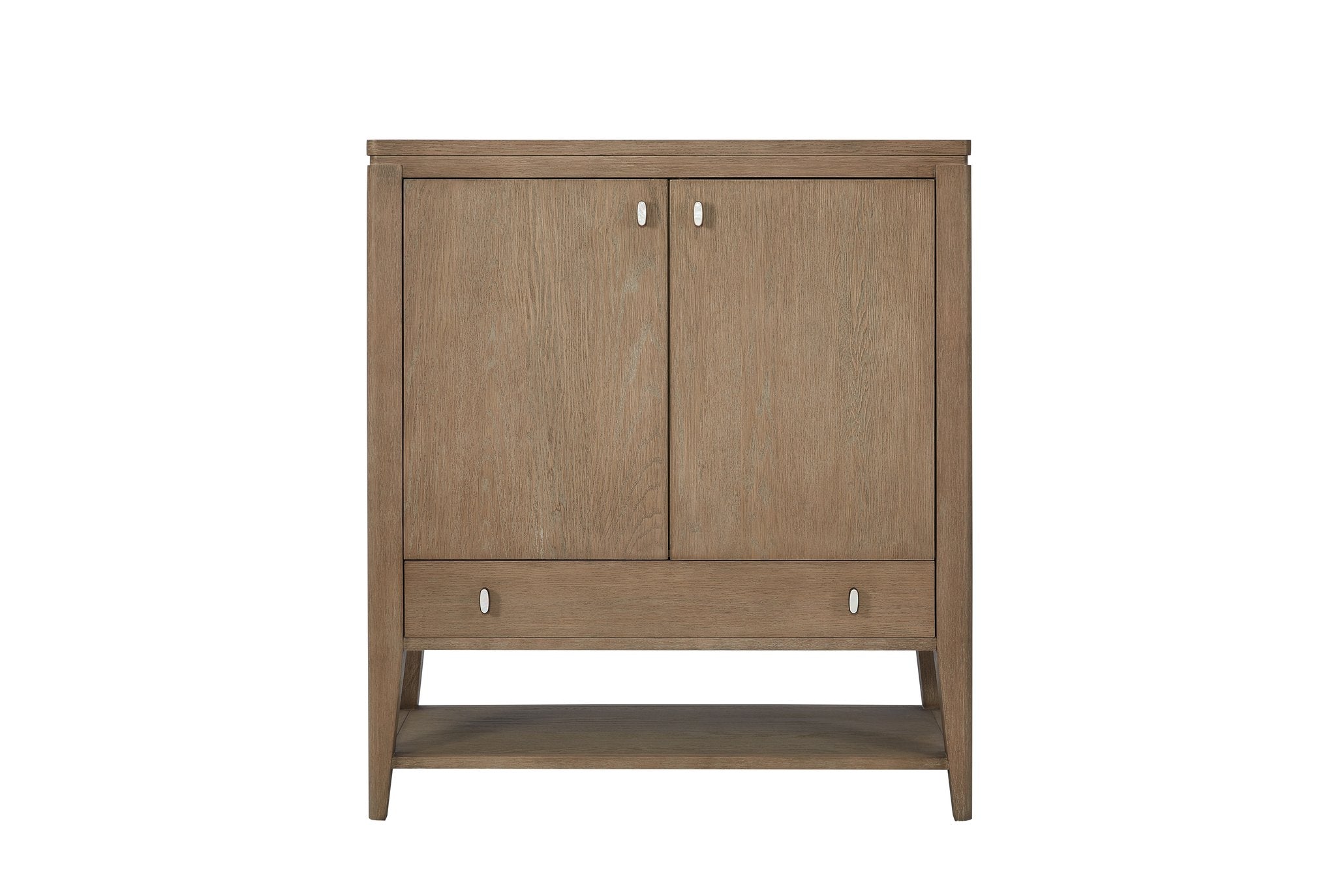- Lower display shelf: Built-in base shelf offers open display or quick-access storage for baskets, decorative objects, or books while keeping the piece visually light.