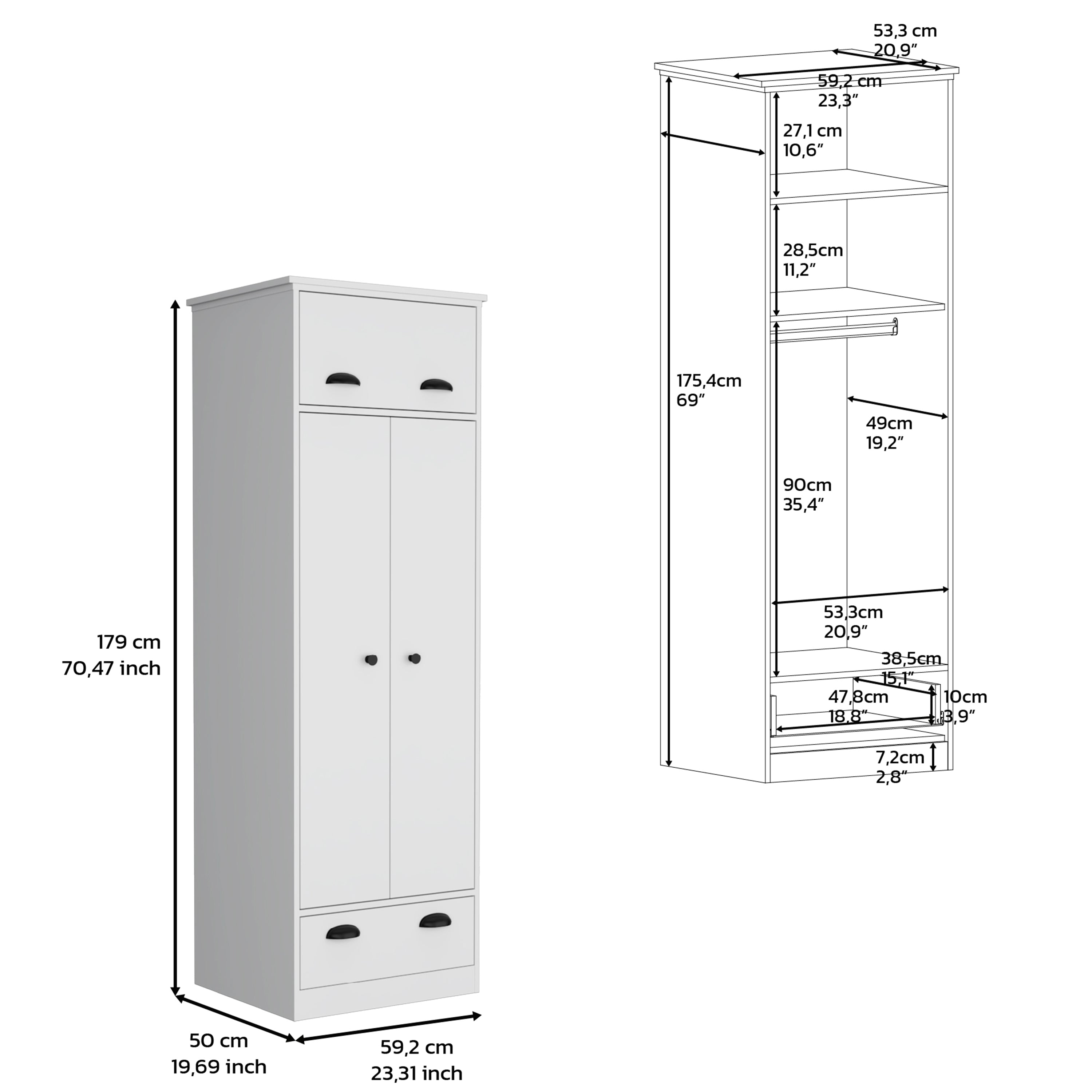 Organize your bedroom efficiently with this versatile white dresser-closet that combines hanging space, shelving, and a bottom drawer in a clean, modern design. Designed for easy assembly and everyday use, it’s an ideal solution for small spaces, guest rooms, or entryways where both storage and a tidy appearance matter.