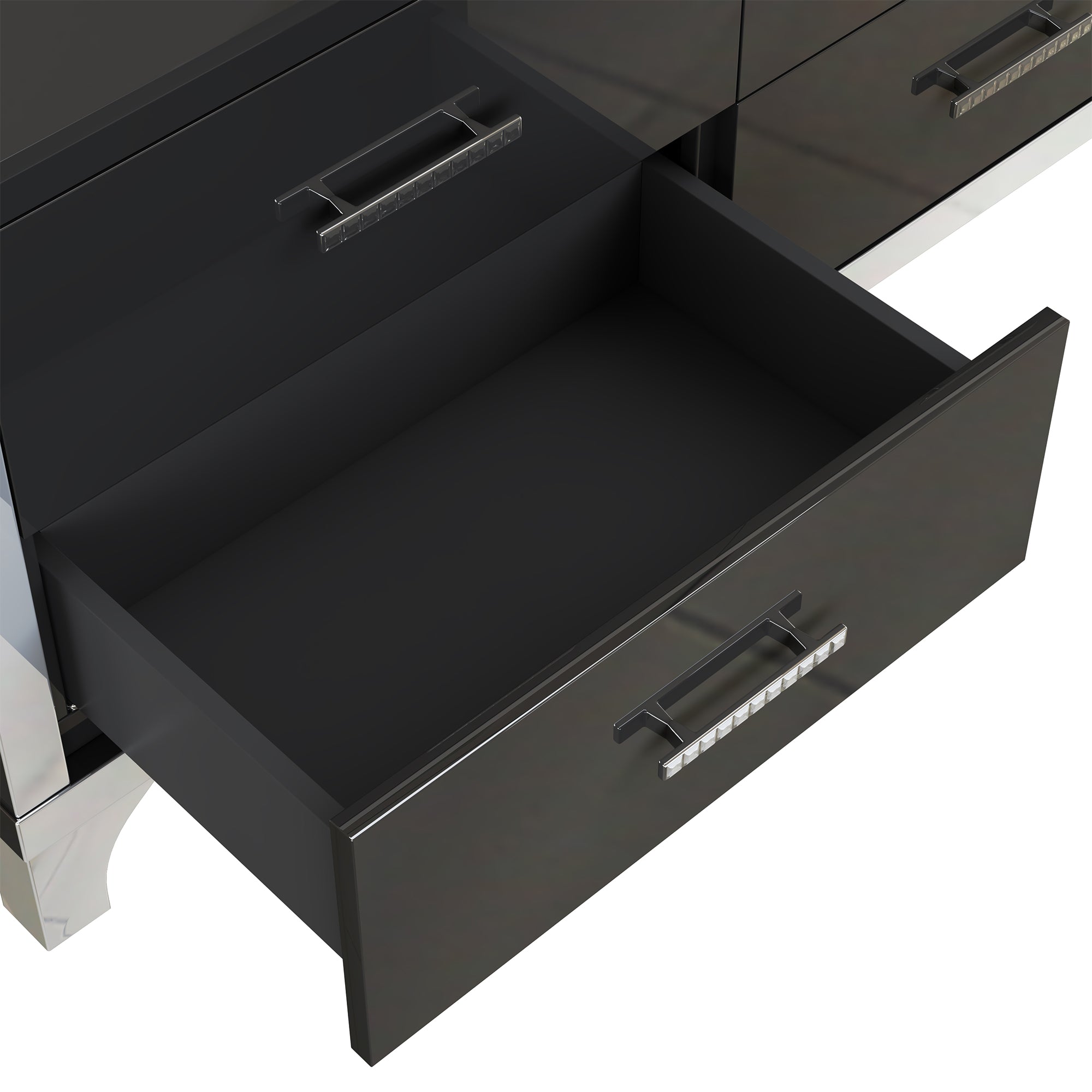 Bring polished modern style and practical storage to your bedroom or living room with this high-gloss mirrored dresser. Designed to maximize space while making a statement, it features six smooth-gliding drawers, a reflective finish that brightens a room, and sturdy construction for everyday use. Perfect for organizing clothing, linens, and bedside essentials while adding a sleek, contemporary accent to your décor.