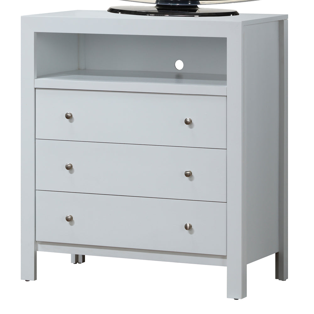 A clean, versatile media chest that blends classic and contemporary styling—perfect for living rooms, bedrooms, or entryways. This elegant white transitional piece offers organized storage, a bright finish that complements a range of decor, and durable construction for everyday use.