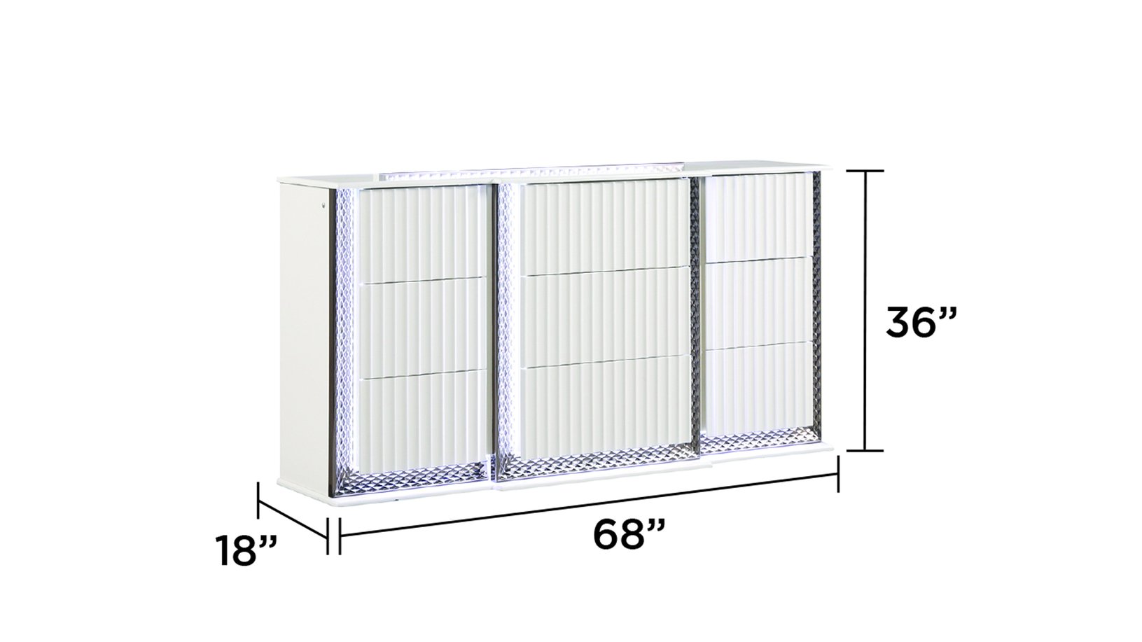 Elevate your bedroom with a modern centerpiece that combines sleek aesthetics and thoughtful functionality. This contemporary 6-drawer dresser features textured drawer fronts, illuminated diamond-pattern side accents, and velvet-lined drawers for delicate items—designed to keep your space organized while adding a refined, ambient glow.