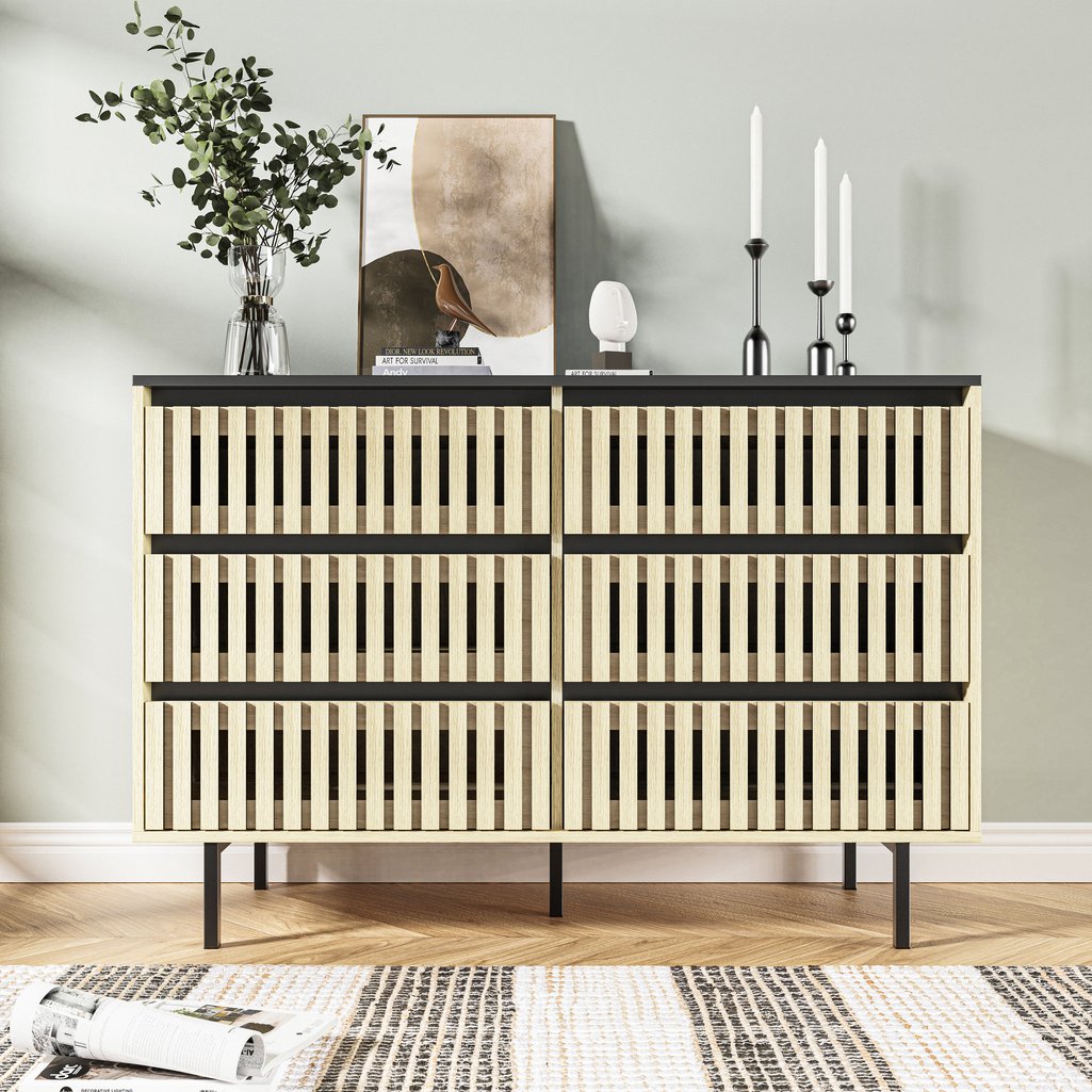 - This storage cabinet has 6 large drawers, providing enough space for storing daily necessities. The vertical striped hollow design makes it easy to find and classify items, keeping your items organized and your room tidy!