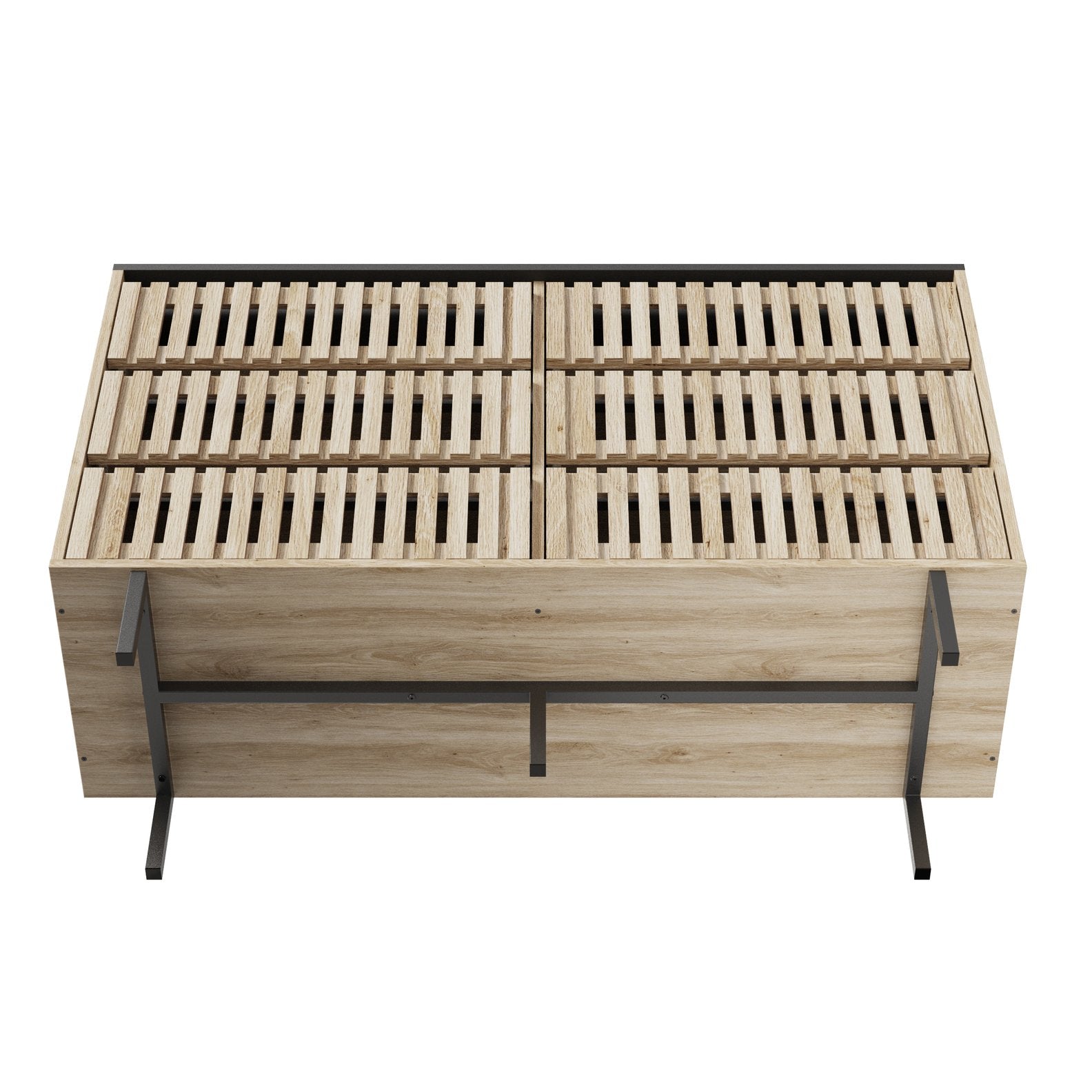 - Two-tone finish: Natural wood tone combined with matte black tabletop and black accent strips for visual contrast and sophistication