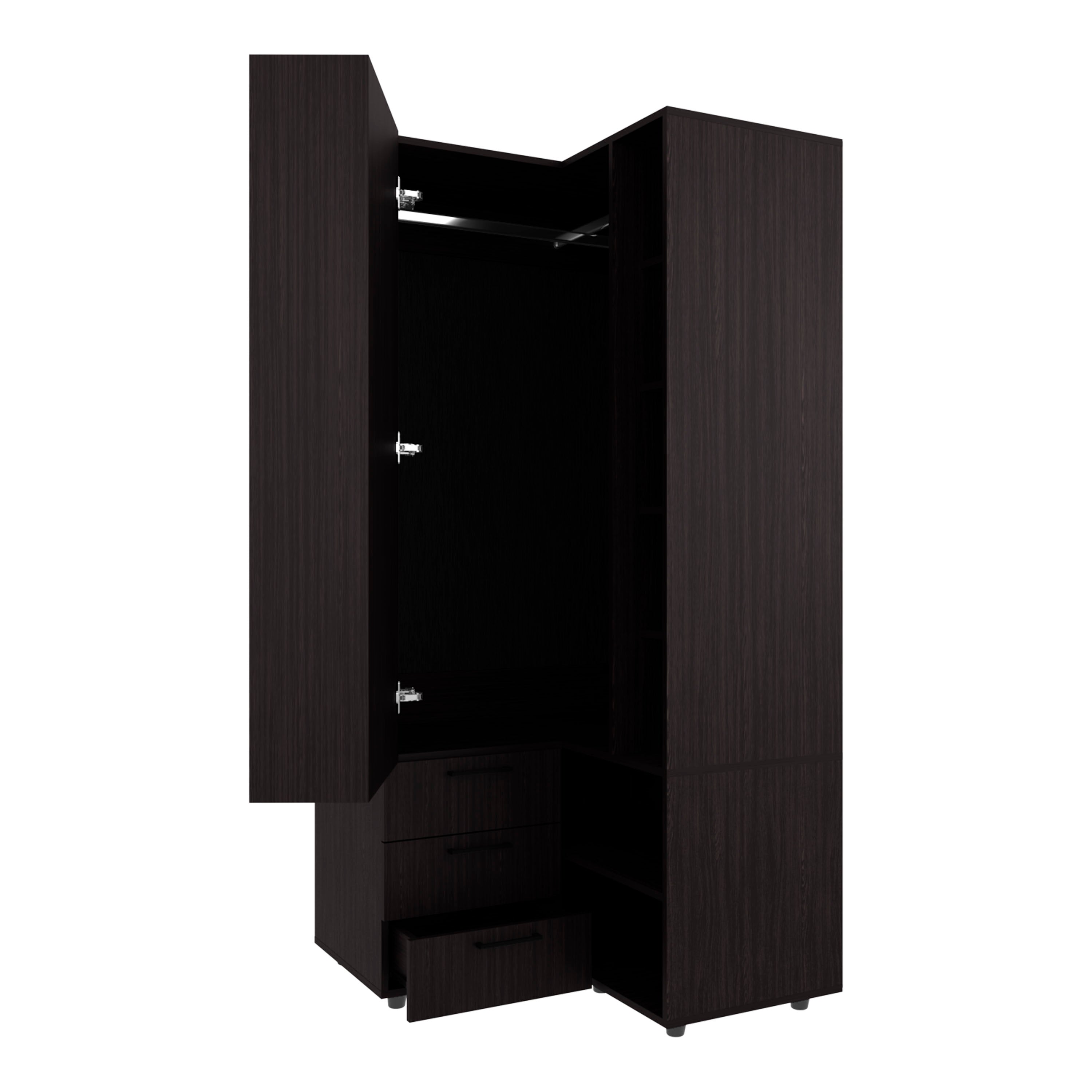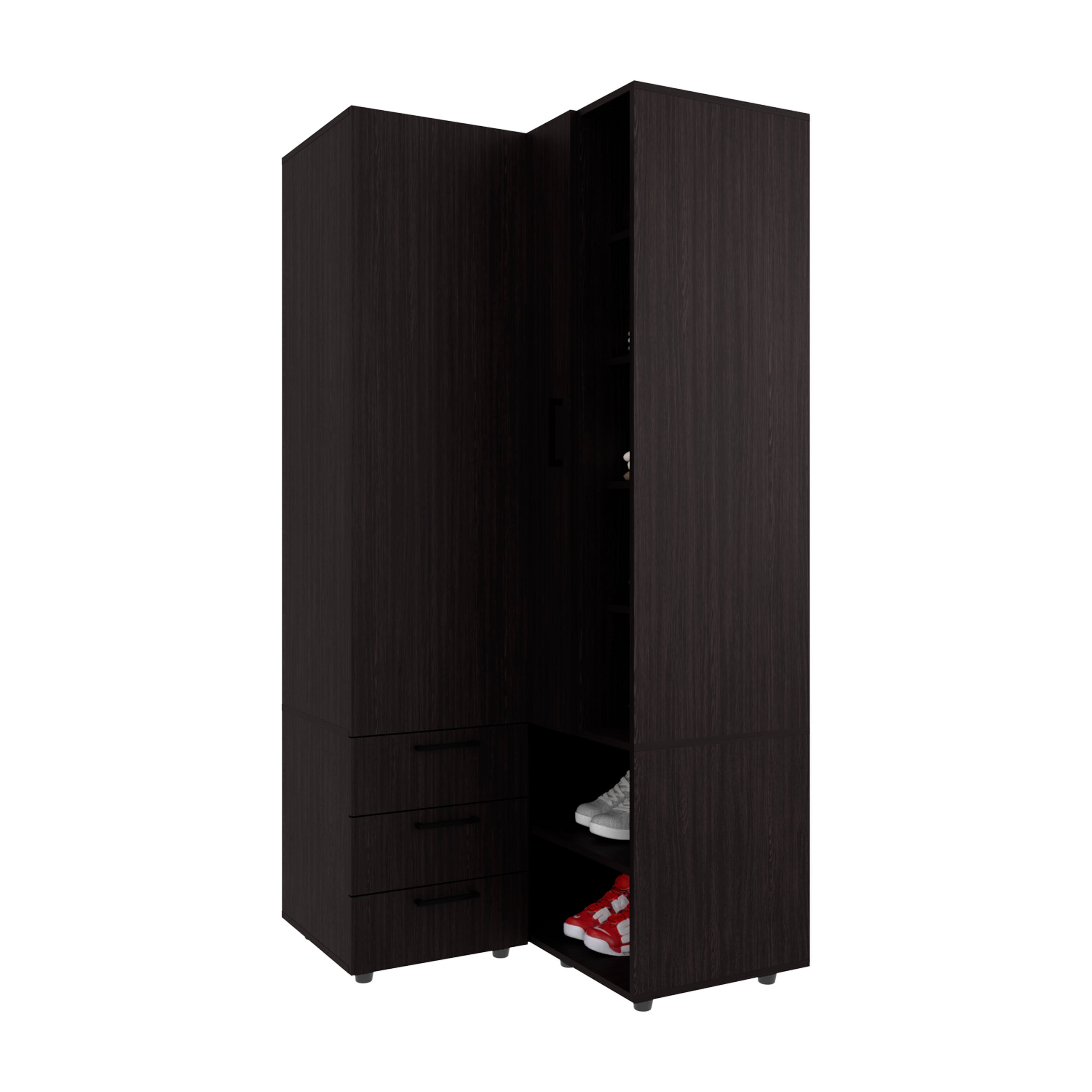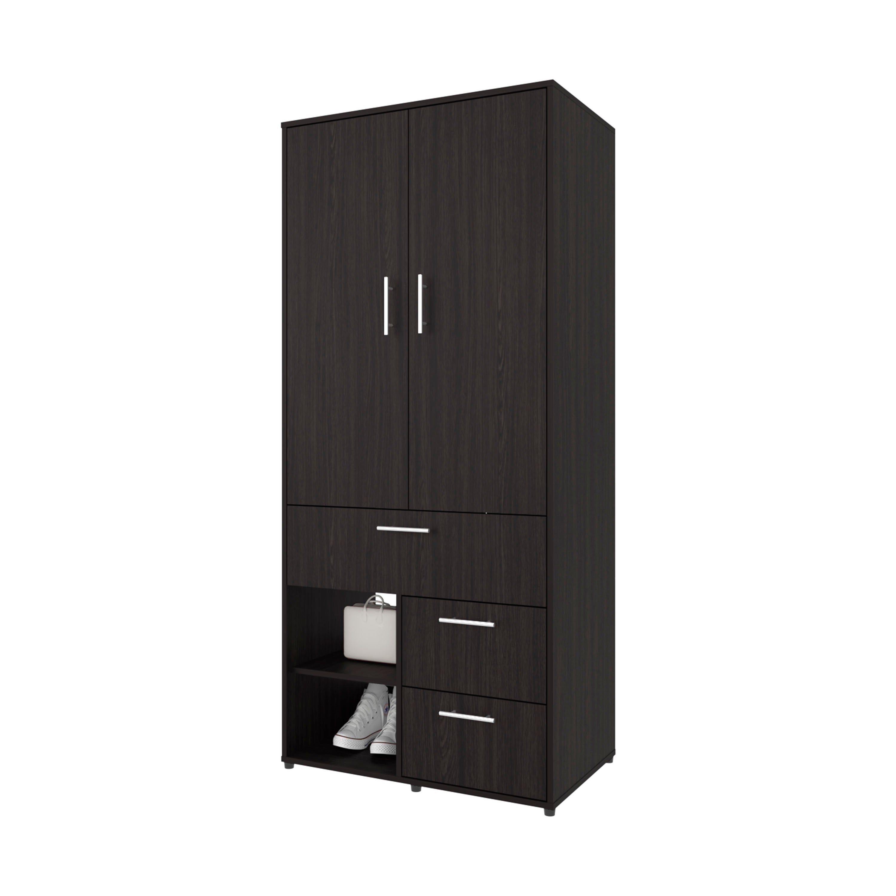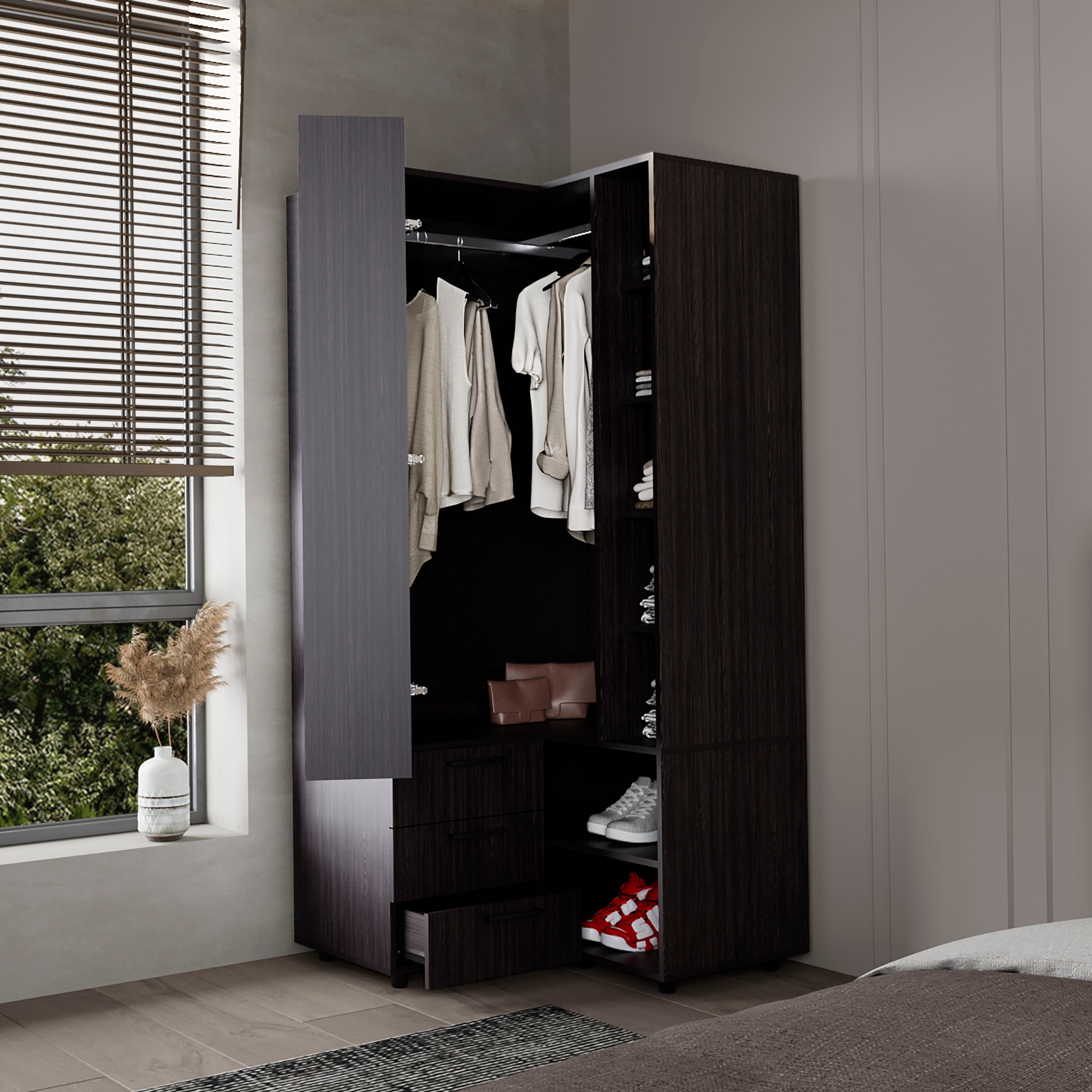A sleek, space-saving wardrobe that blends modern styling with practical organization—perfect for small bedrooms, guest rooms, or entryways. The Care Free Multi-Storage Wardrobe combines a hanging rod, three drawers, and open shelving to keep clothing, shoes, and accessories neatly arranged while maintaining a clean, minimalist look in a warm Wenge finish.