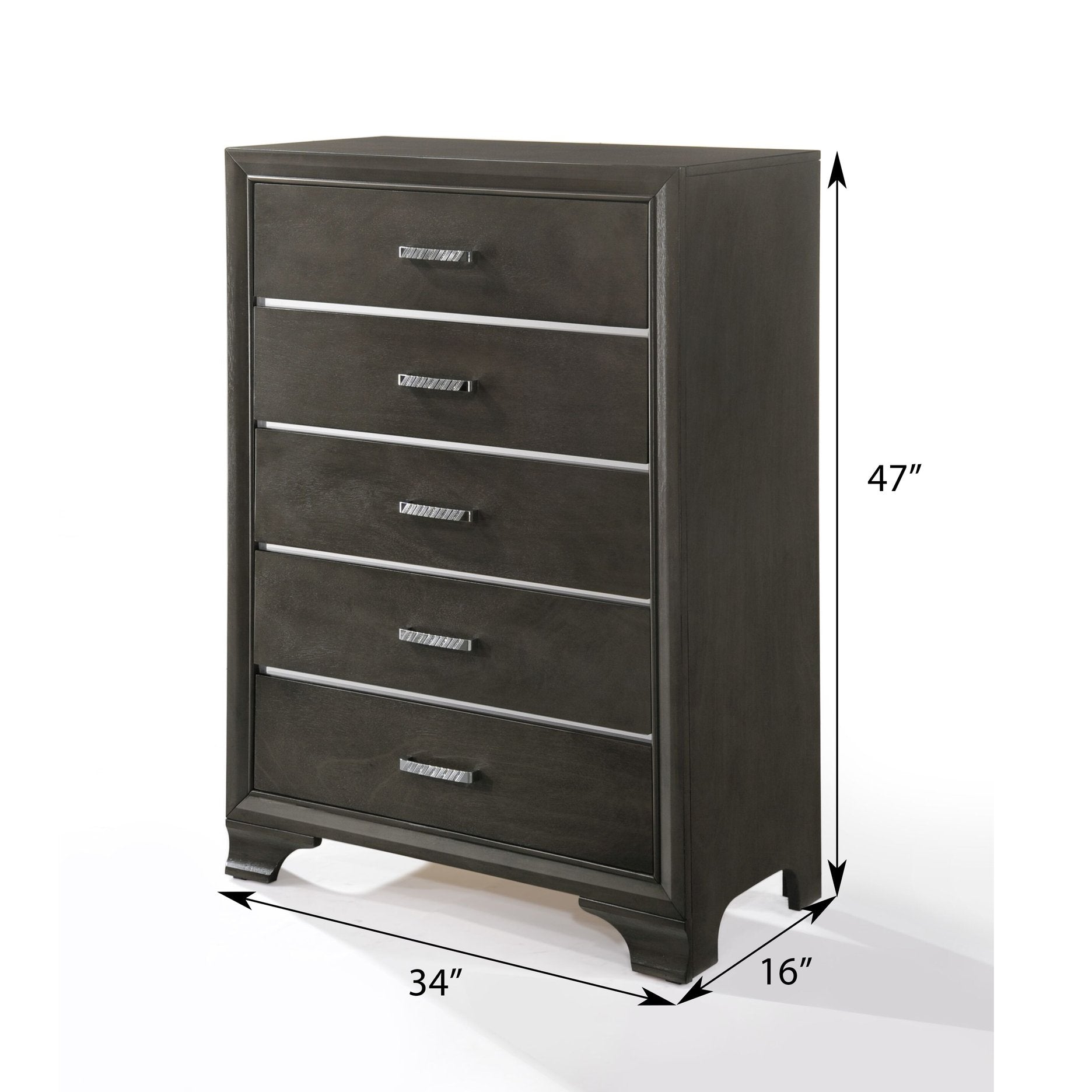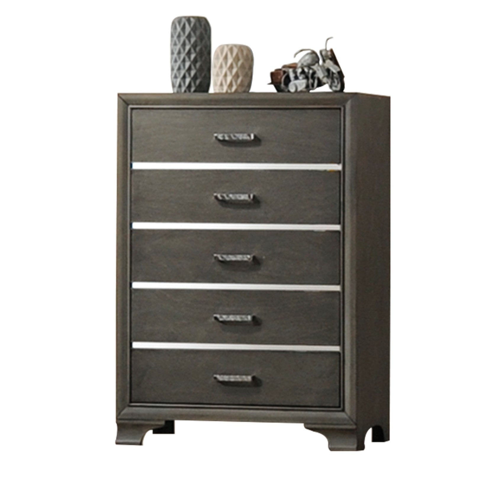 Elevate your bedroom or living space with this elegant 5-drawer chest that blends modern simplicity and practical storage. Its clean rectangular silhouette and sophisticated grey finish create a calming, versatile focal point while five roomy drawers keep clothing, linens, and everyday essentials neatly organized and easily accessible.