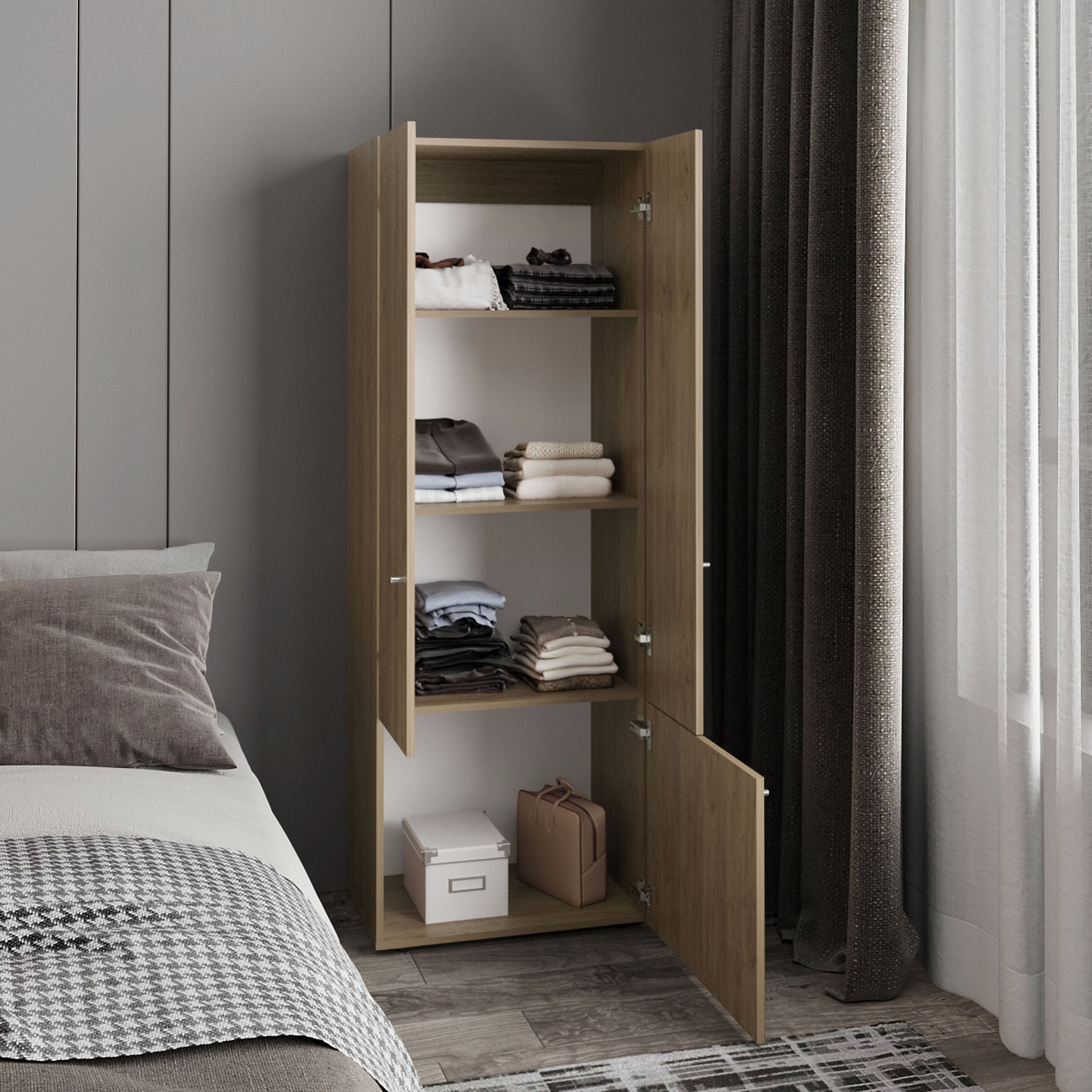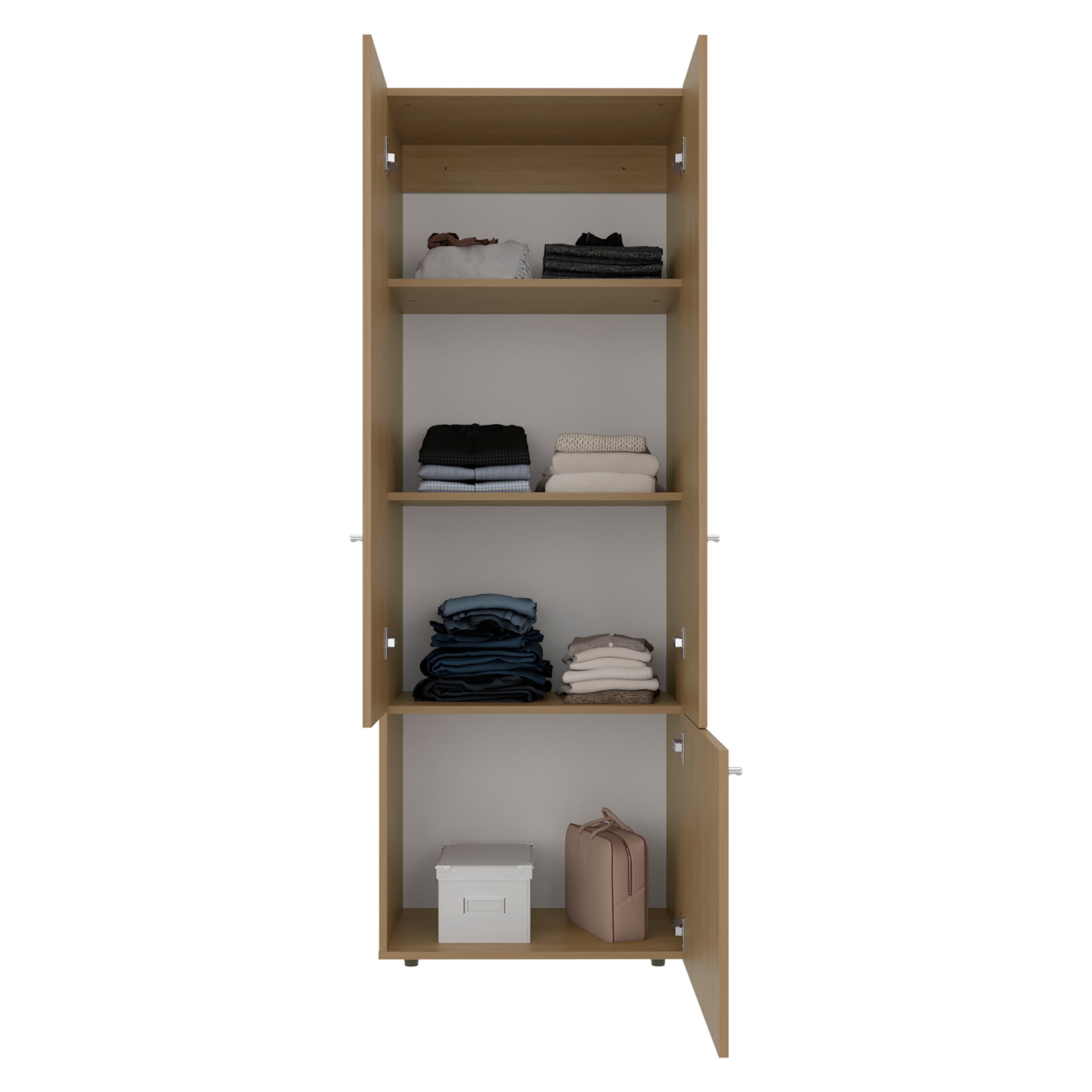 - Equipped with fixed interior shelves that ensure sturdy storage of folded garments, boxes, or daily-use accessories.