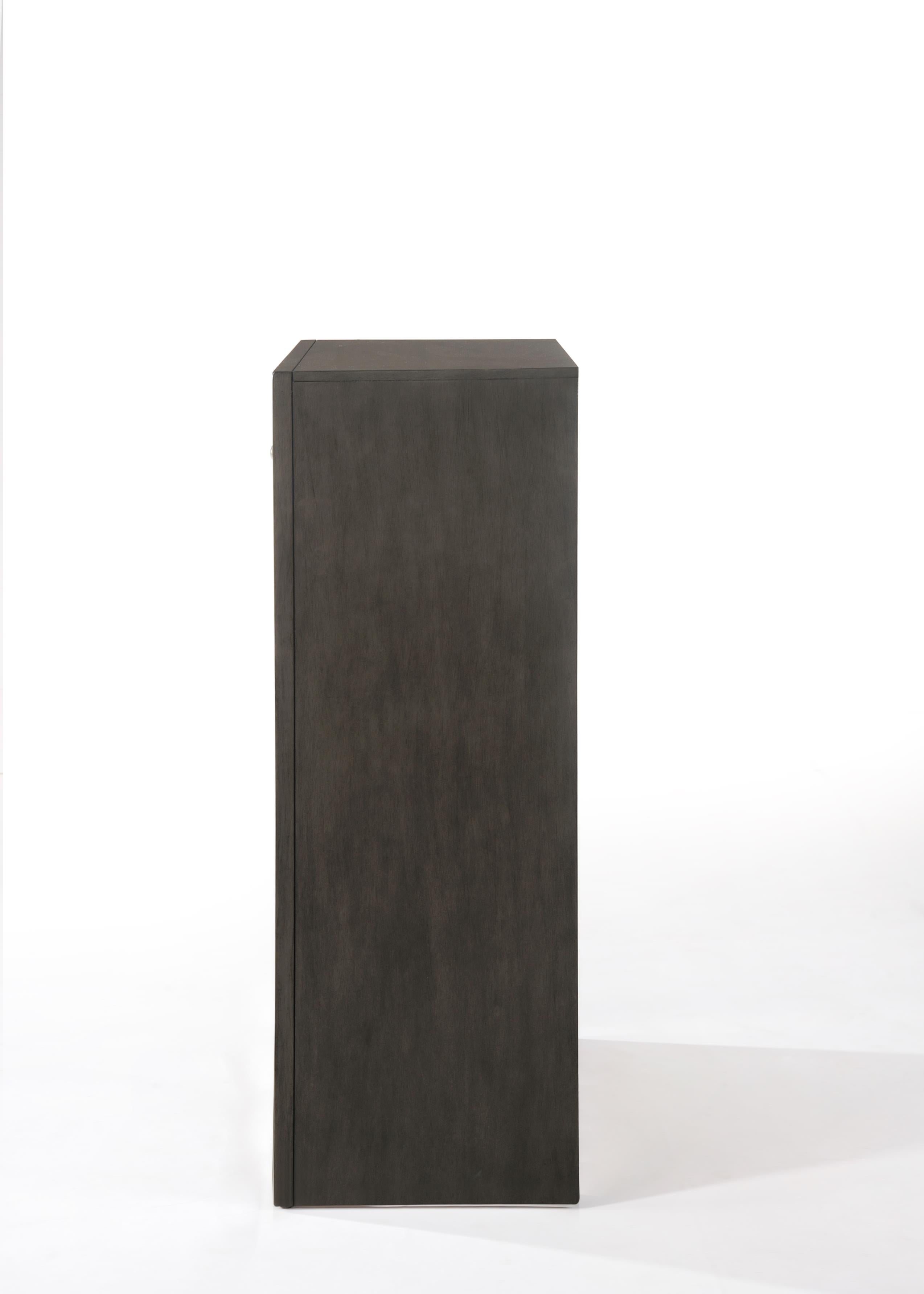 - Finish & Material: Deep black finish over synthetic wood with a top surfaced in luxurious Okume veneer for a rich, durable look