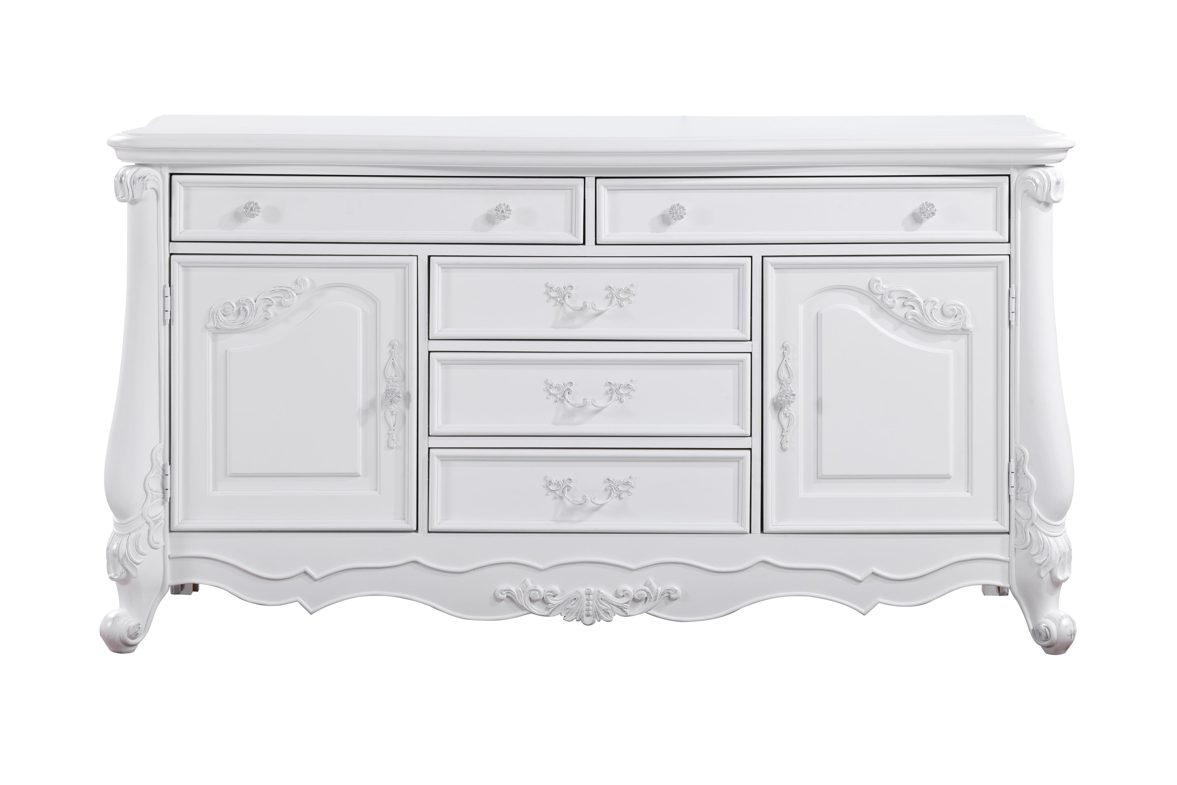 - This dresser in a clean white finish is a perfect blend of functionality and style, adding a touch of elegance to any bedroom.