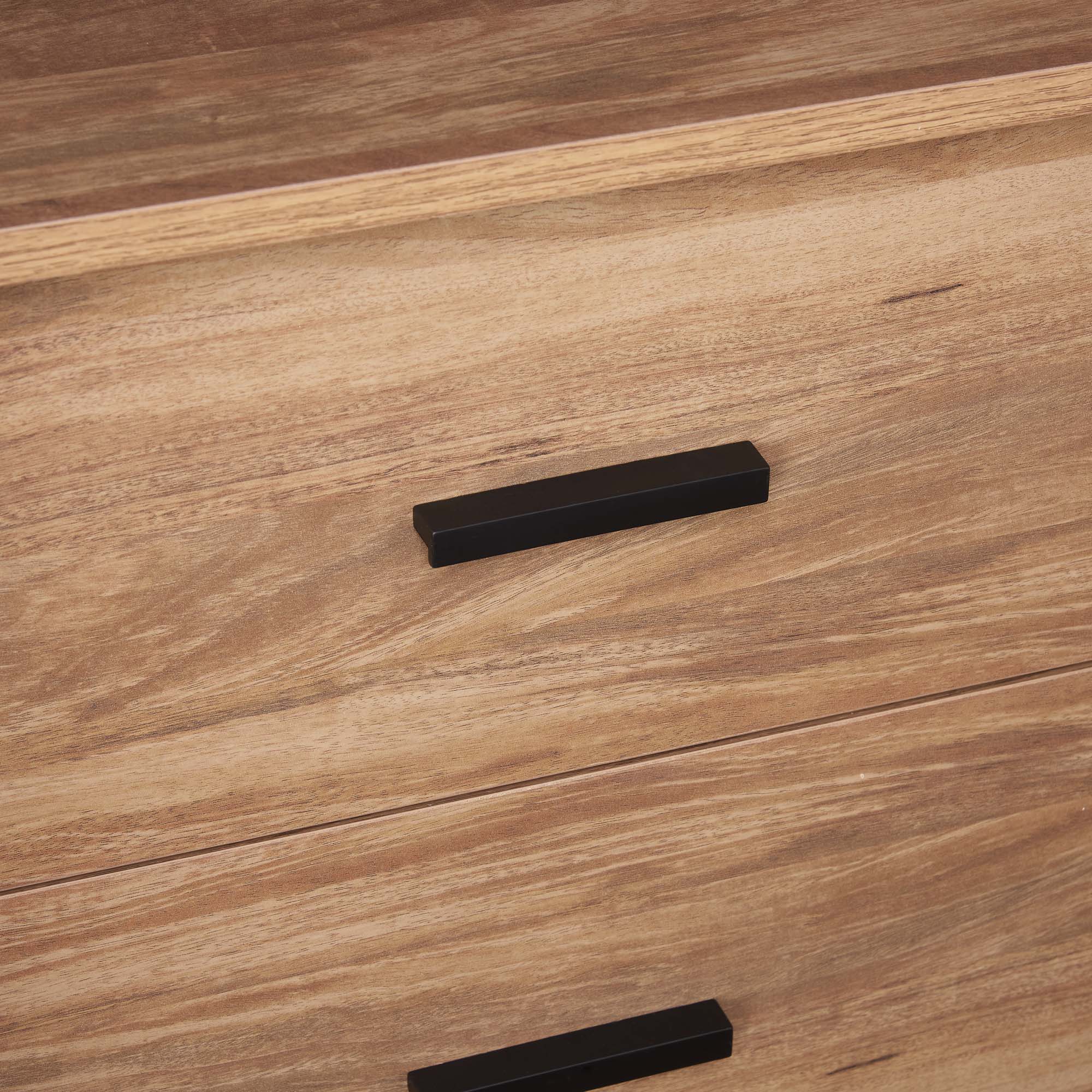 - Handles and hardware: Sleek black metal horizontal drawer handles and long vertical black metal door handles for a cohesive aesthetic