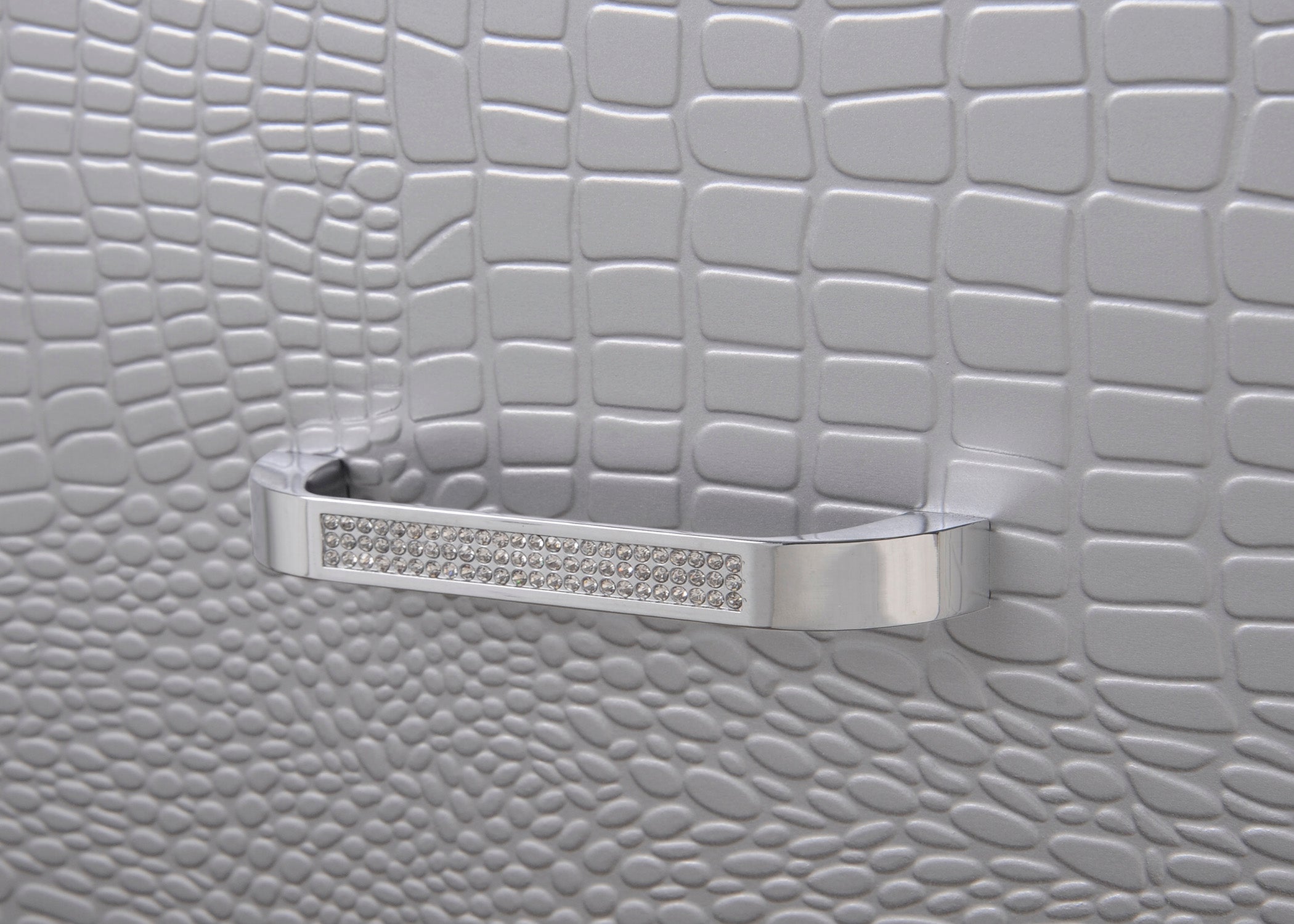 - Design highlights: Crocodile-embossed drawer fronts and mirrored accents for texture and visual interest