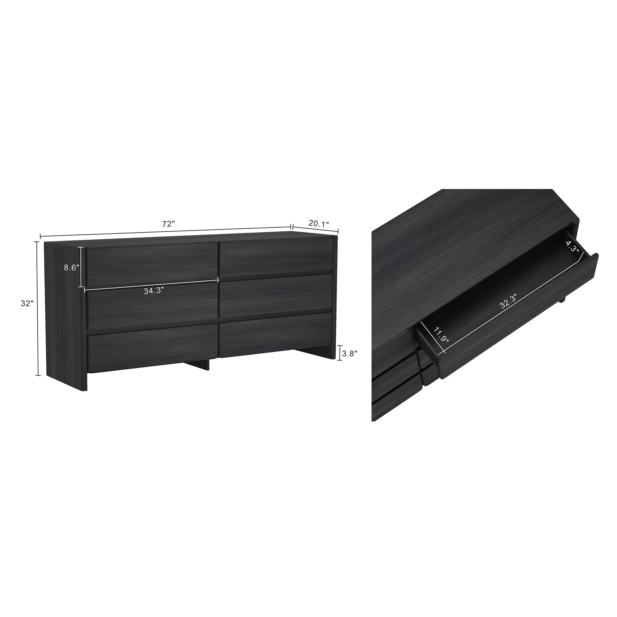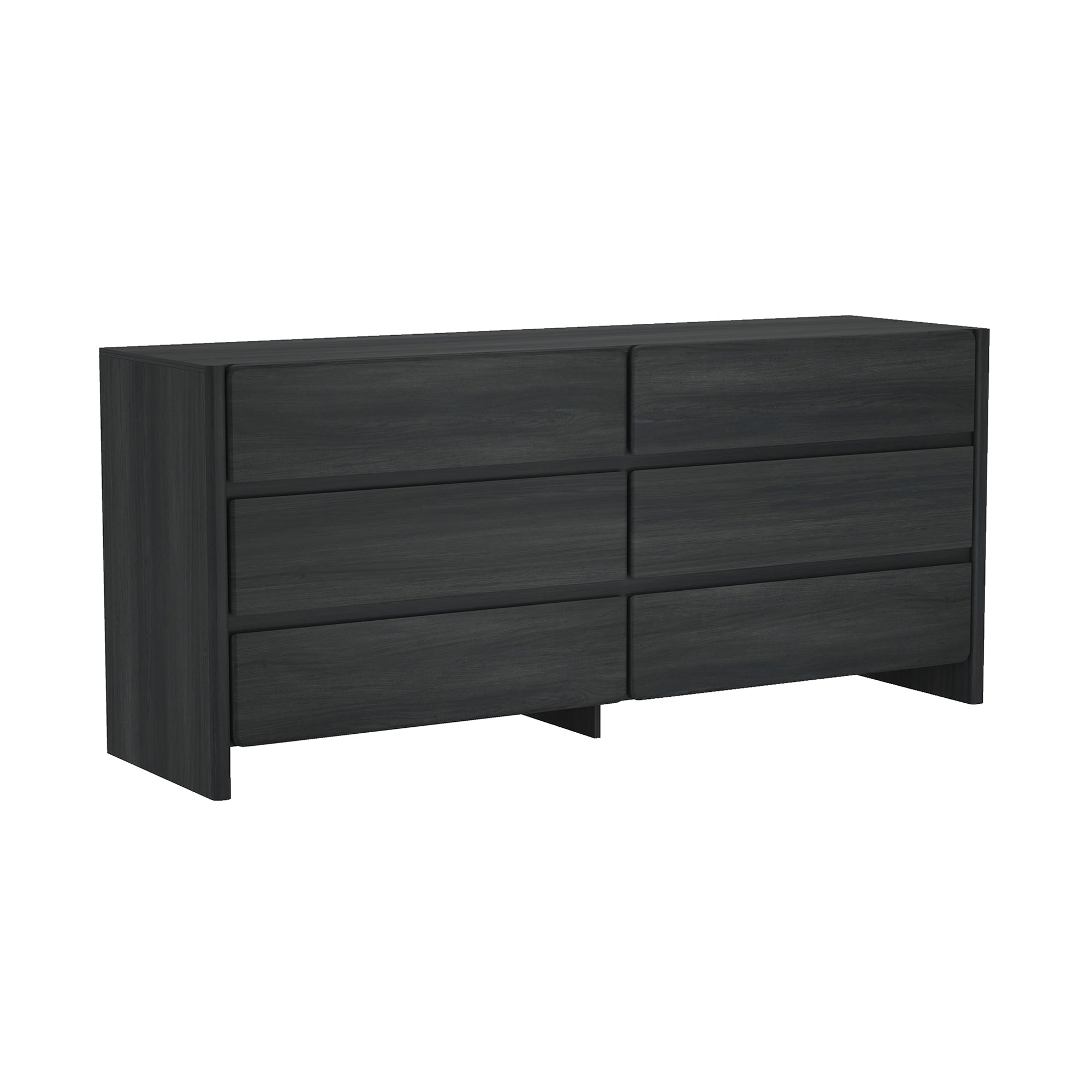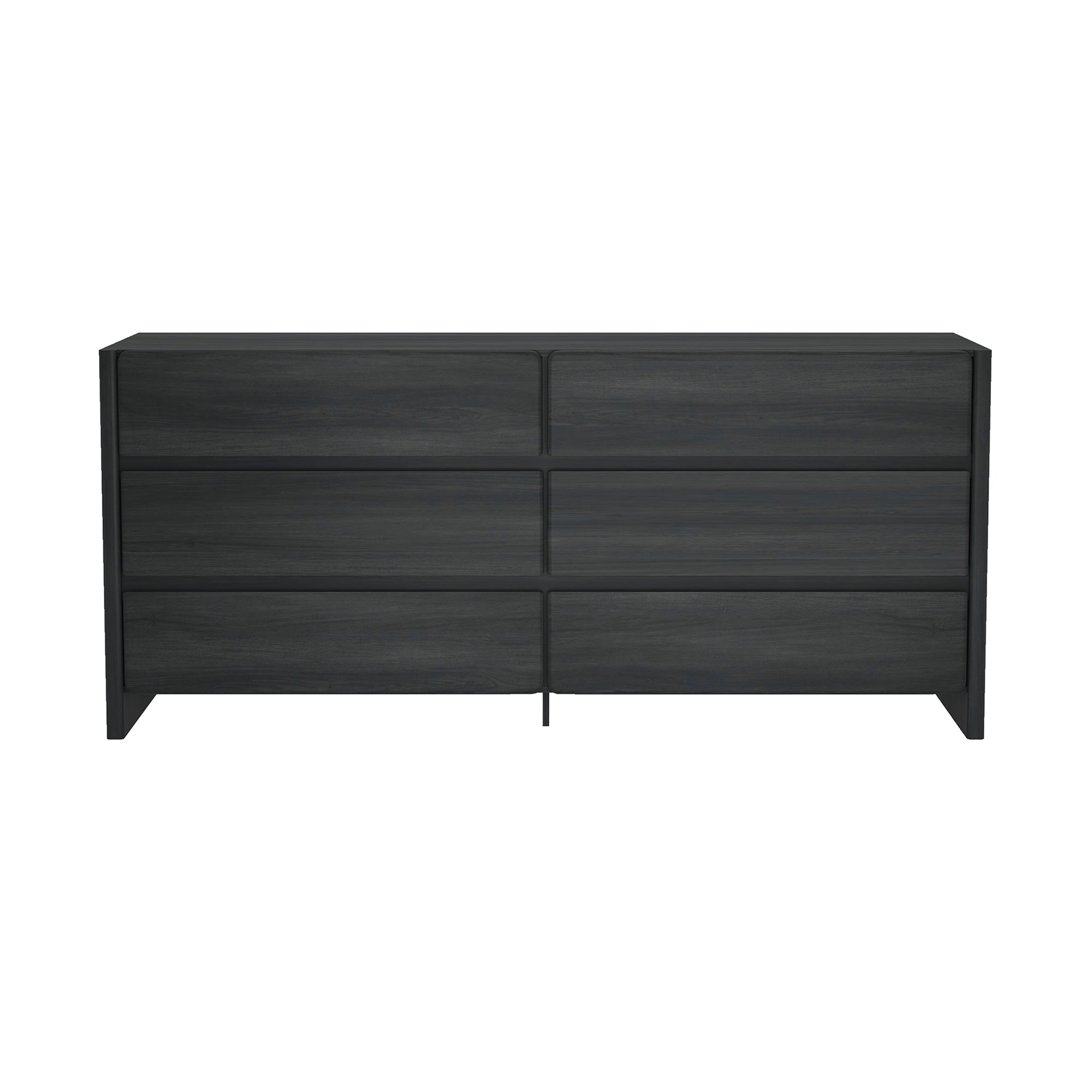 Bring modern simplicity and generous storage to your bedroom with this sleek 6-drawer dresser in charcoal gray. Designed with a low-profile silhouette, rounded drawer fronts, and a rich wood-grain texture, it blends contemporary minimalism with functional organization — ideal for folded clothing, bedside essentials, or display items.