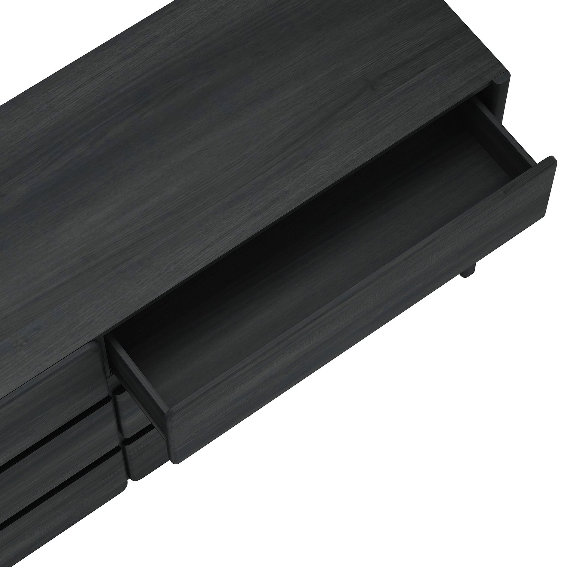 - Minimalist low-profile design with smooth, rounded drawer fronts for a soft modern aesthetic.