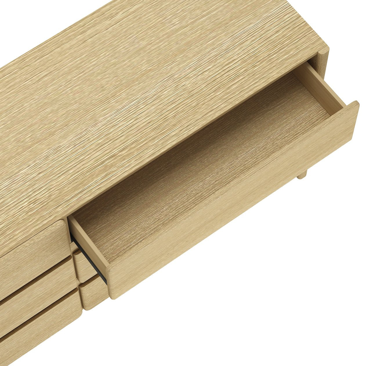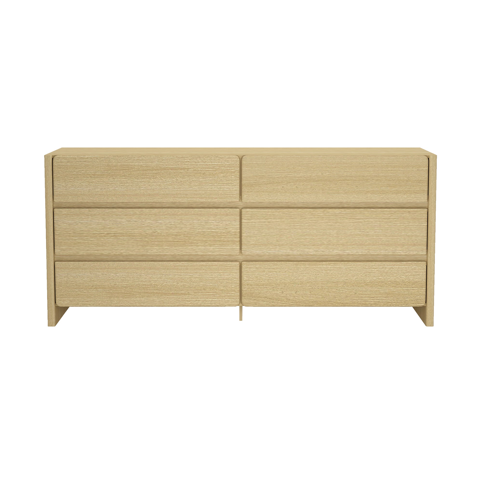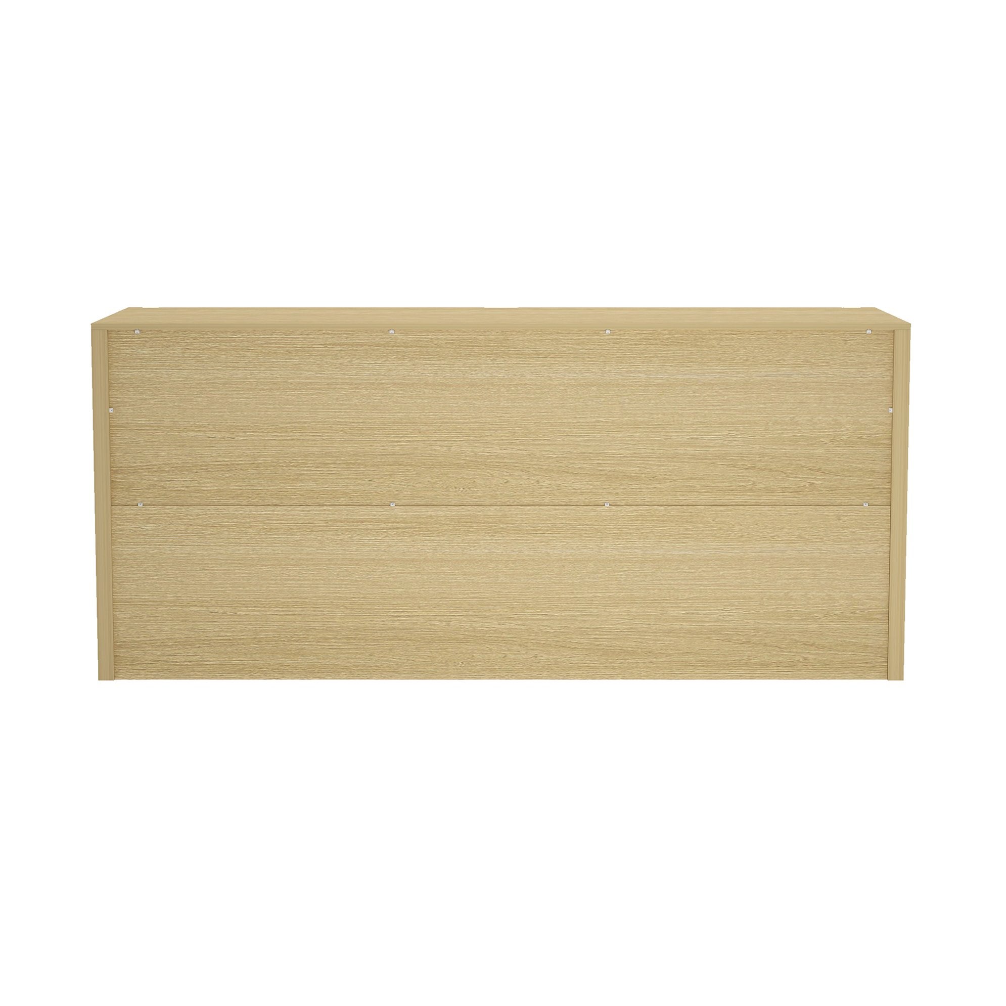This spacious, modern dresser blends clean Scandinavian-inspired lines with natural oak warmth to organize your bedroom effortlessly. Its low-profile silhouette and smooth, rounded drawer fronts create a soft contemporary look while providing ample storage for clothing and linens. Built from durable particle board and finished in a rich wood grain texture, it’s designed for everyday use and display.