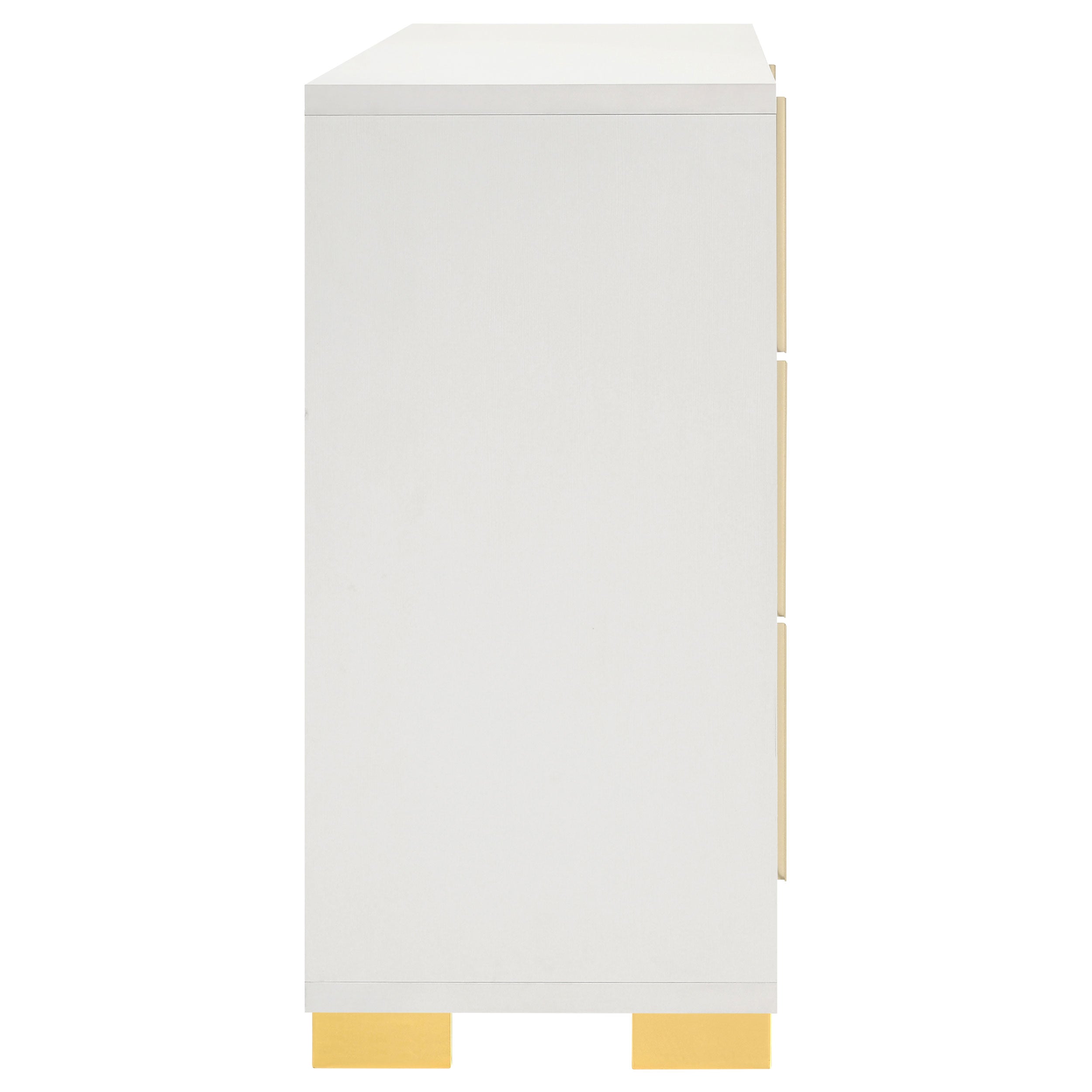 Elevate your bedroom with a clean, contemporary dresser that blends modern detailing with practical storage. The Medici six-drawer dresser pairs a timeless white finish with vertically aligned bar pulls that create a refined striated look, offering both style and easy access to everyday clothing and accessories. Its wide top provides a versatile surface for décor, a mirror, or essentials, while the balanced silhouette complements a variety of bedroom aesthetics.