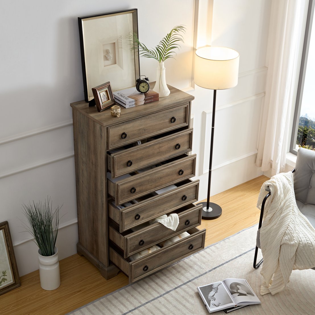 - Six Spacious Drawers: Provides ample organized storage for clothing, linens, and accessories while maximizing vertical space.