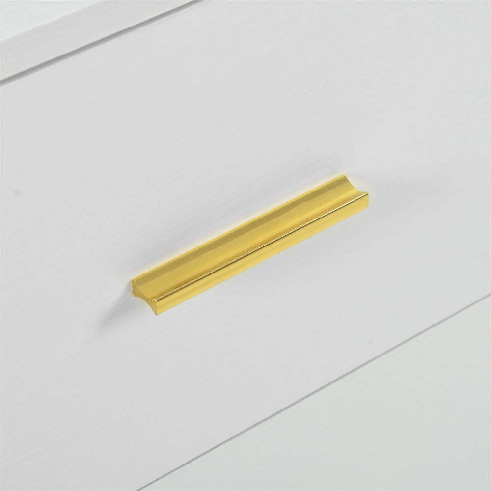 - 1.Simple style: This dresser with golden handles adds a touch of modern elegance to your bedroom. Its classic design complements any décor style, making it a versatile addition to your home