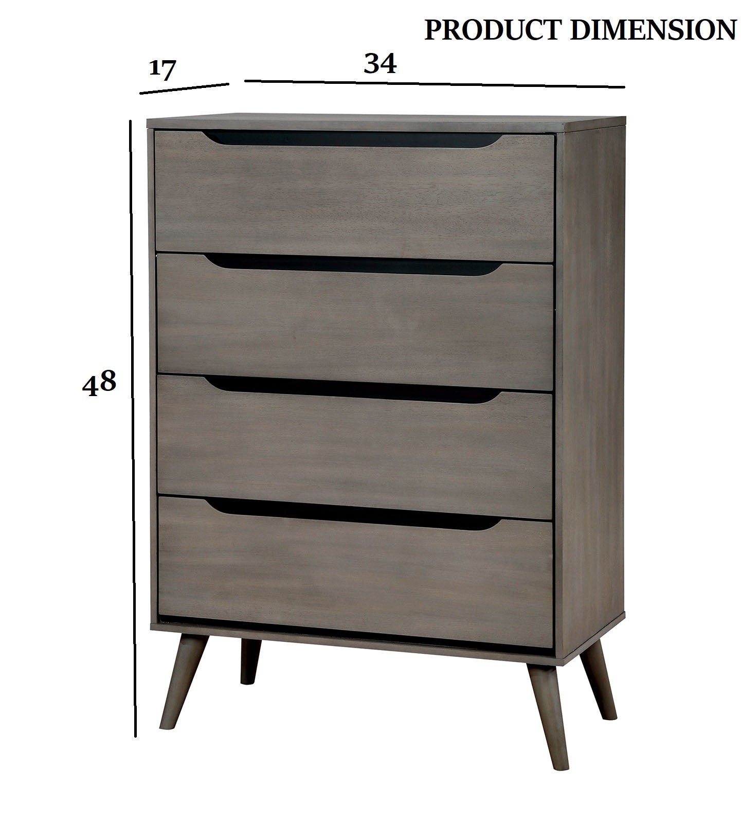 Refresh your bedroom with a sleek mid-century modern chest that blends clean lines and functional storage. Designed with tapered flared legs, recessed drawer pulls, and a neutral gray finish, this piece brings timeless style and everyday practicality to small or large spaces.