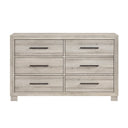 Refresh your bedroom with this contemporary six-drawer dresser in a modern gray finish — a blend of clean lines, durable construction, and thoughtful storage to keep your space organized and stylish. Fully assembled for immediate use, it pairs refined antique-brass tone bar pulls with smooth-operating drawers for everyday convenience and a polished look.
