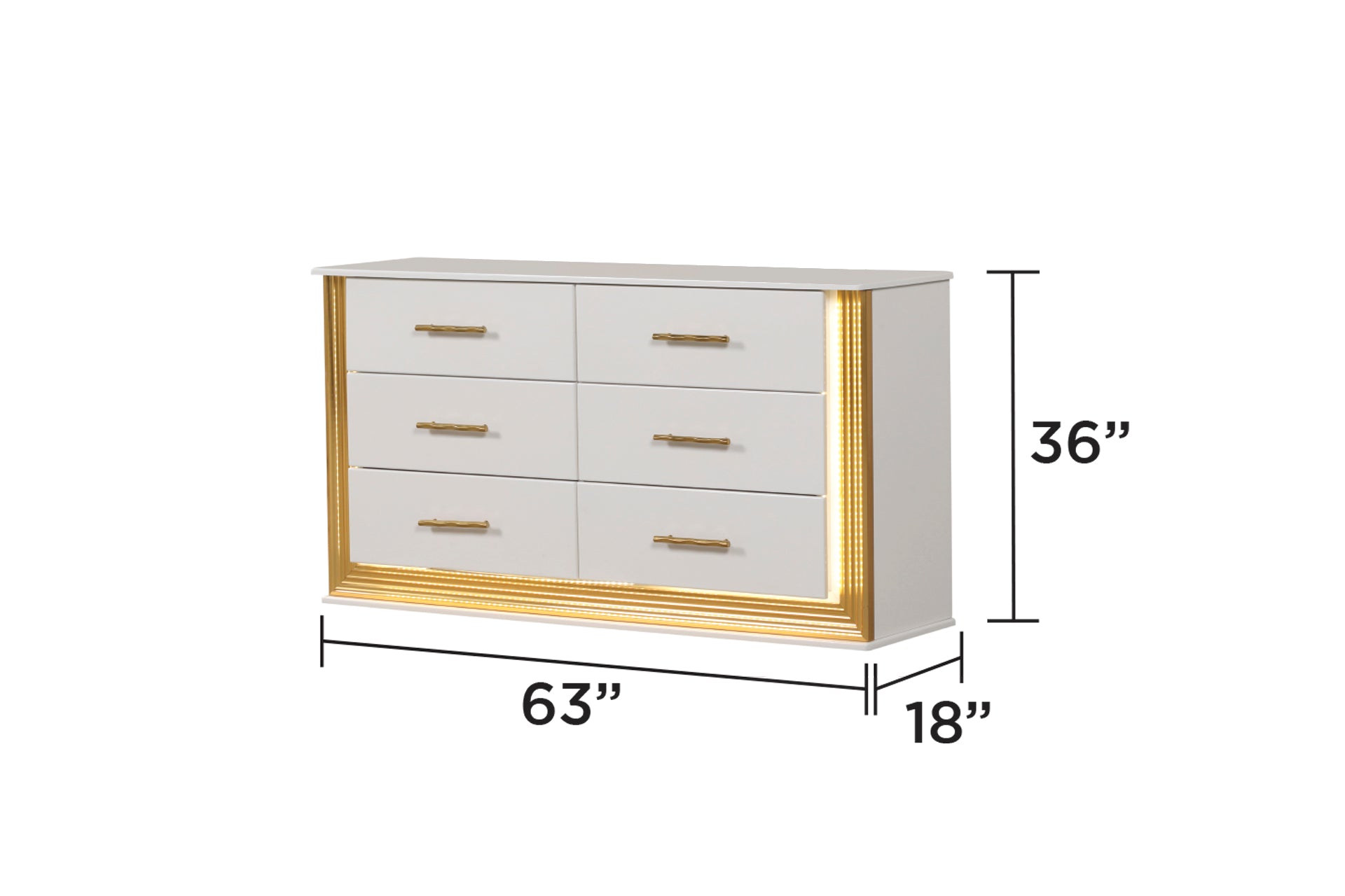Elevate your bedroom with a dresser that balances glamorous design and everyday functionality. This contemporary six-drawer piece provides generous storage, integrated LED lighting for ambiance, and a radiant gold finish that transforms your space into a stylish sanctuary.
