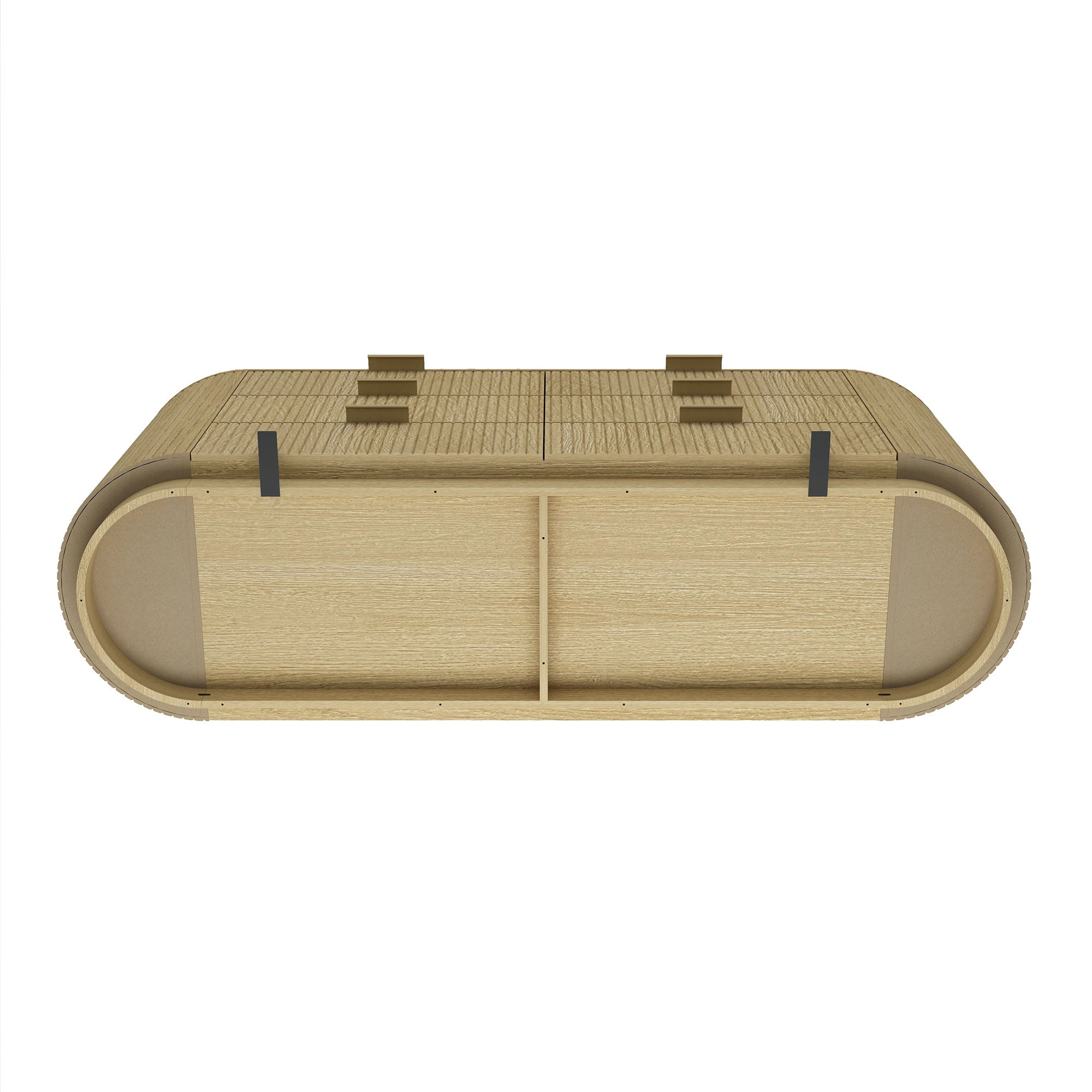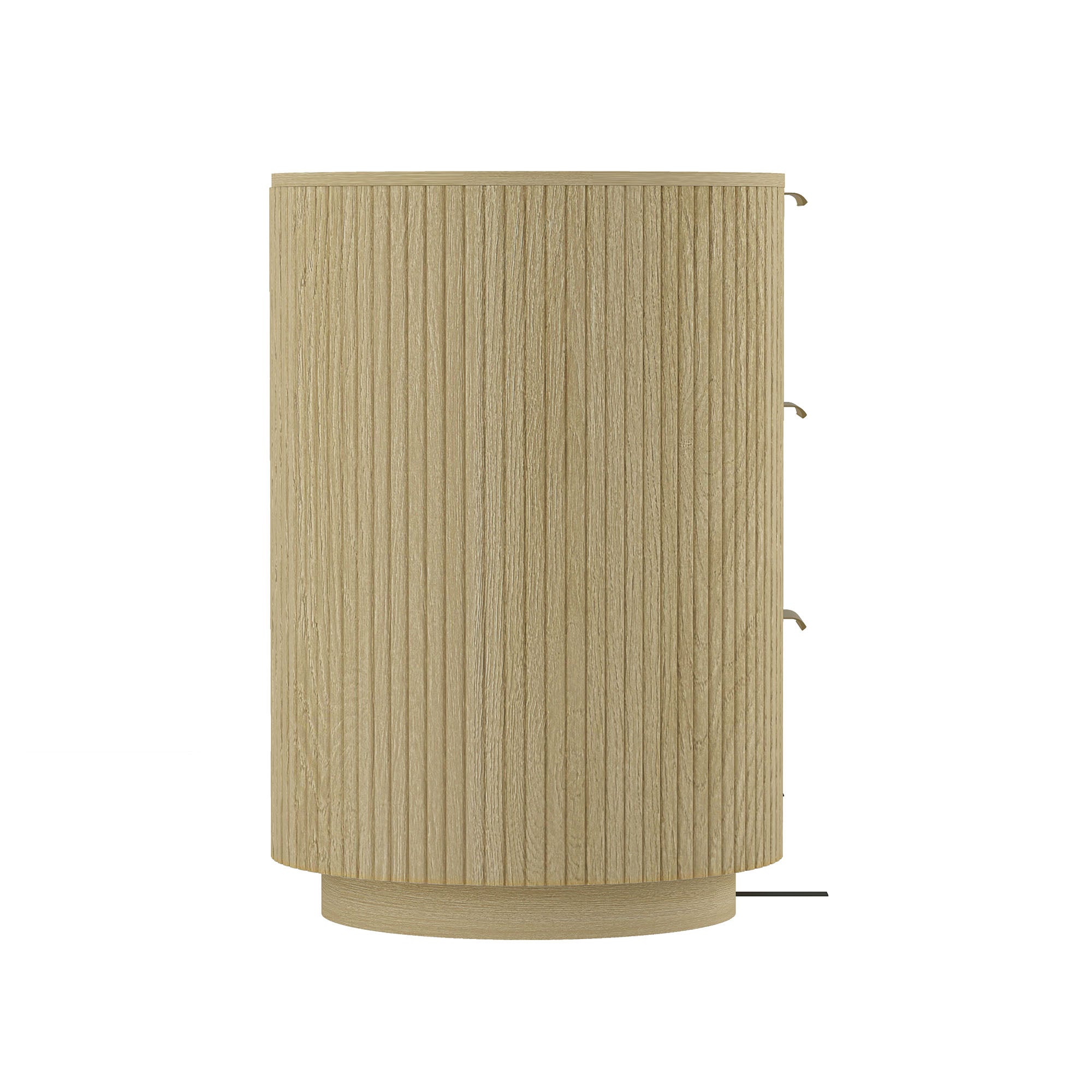 - Materials & Finish: Constructed from durable MDF with a natural oak wood-grain finish and ribbed texture that adds visual depth and warmth.