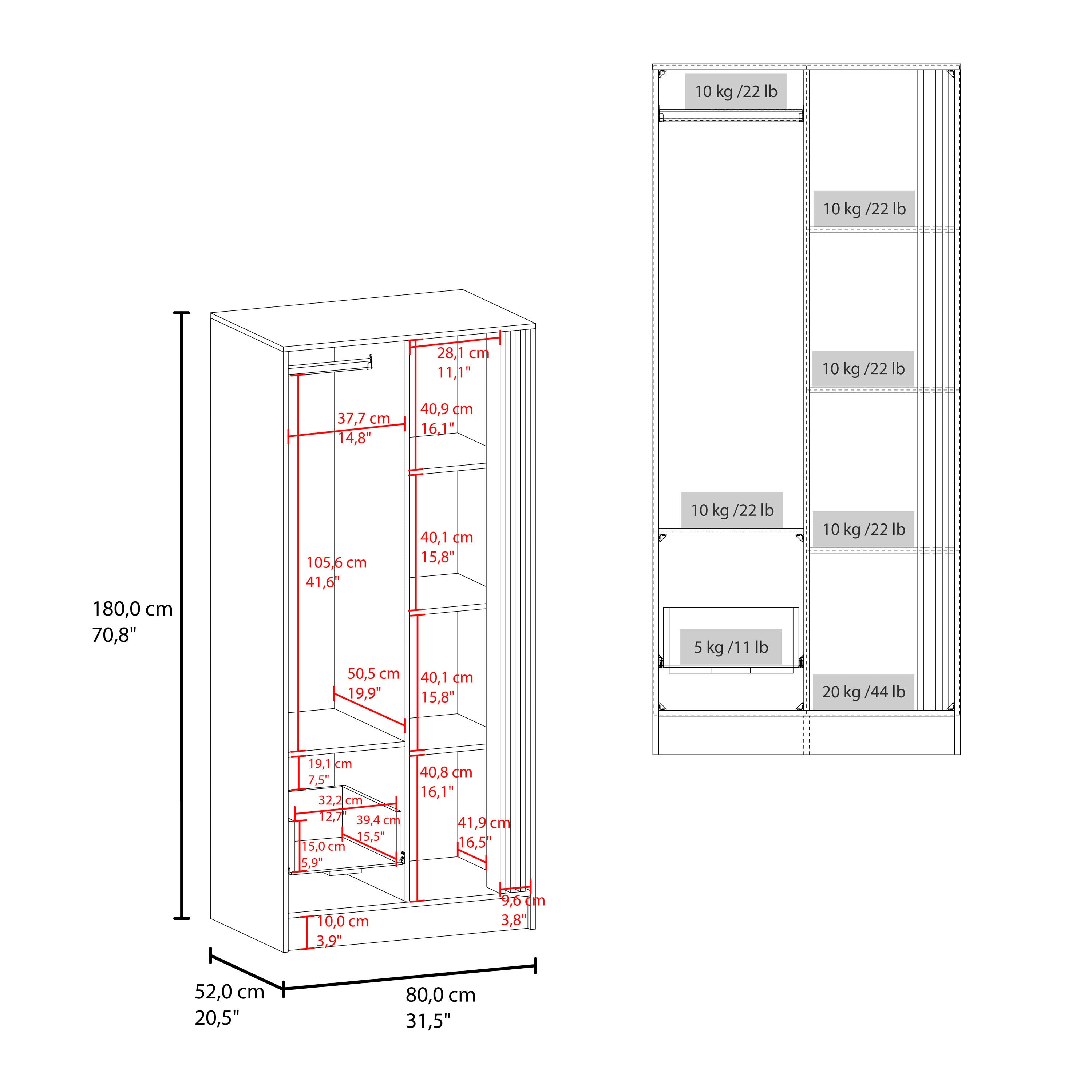 - Dimensions: 70.8" (H) x 31.5" (W) x 20.5" (D)."