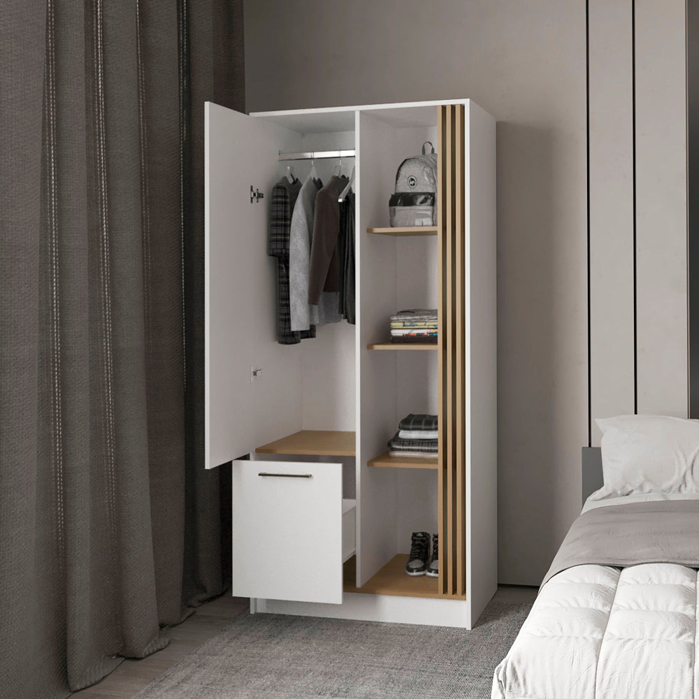 Keep your bedroom clutter-free with this modern Pekin wardrobe organizer, crafted for practical everyday use and contemporary appeal. Clean lines and a natural oak finish make it a versatile storage piece that organizes clothing, shoes, and accessories while maintaining a streamlined look.
