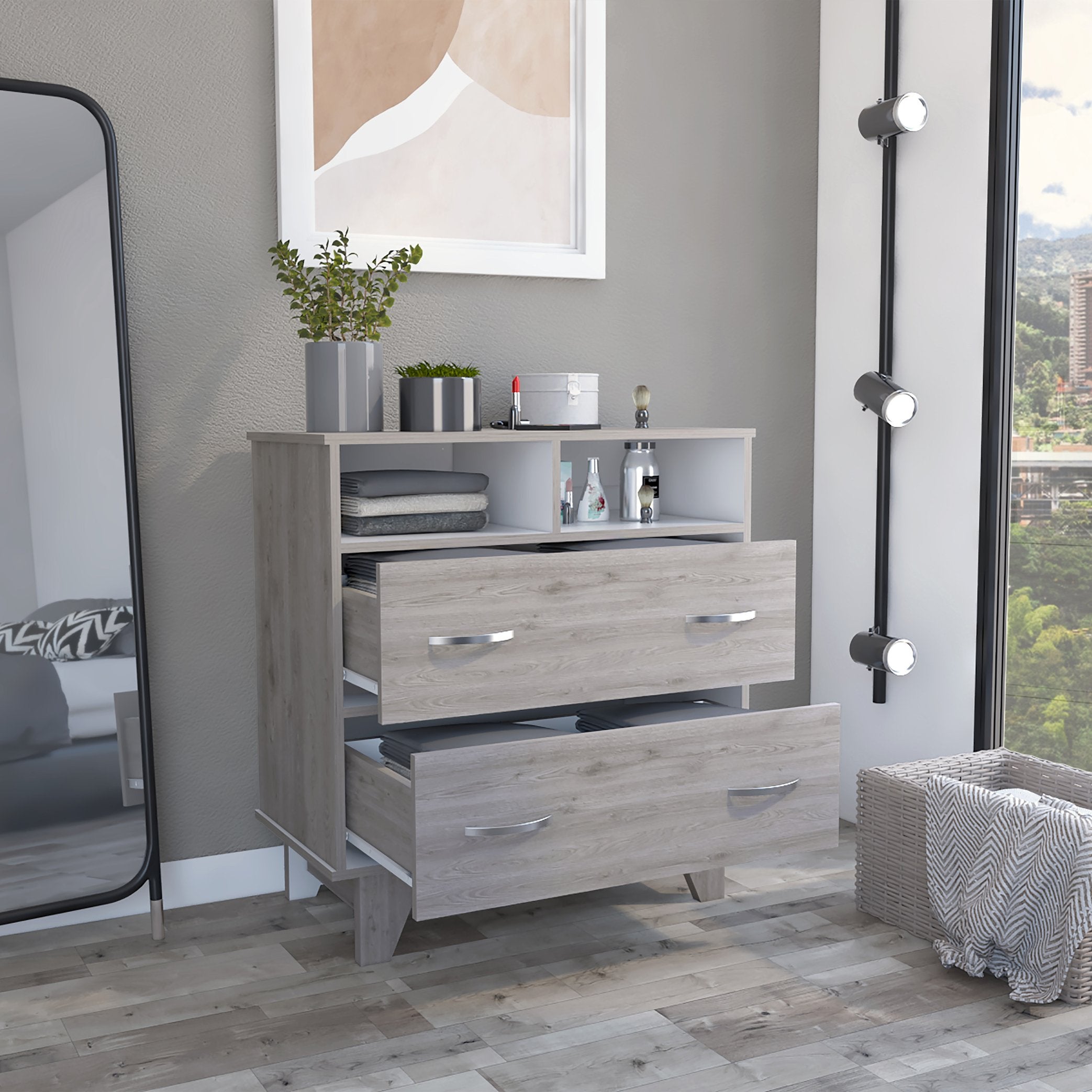 - Drawers: Two smooth-glide drawers with dimensions listed as 29.4" W x 27.4" W x 9.2" H (per original specs) — provide concealed storage for clothing or household items.