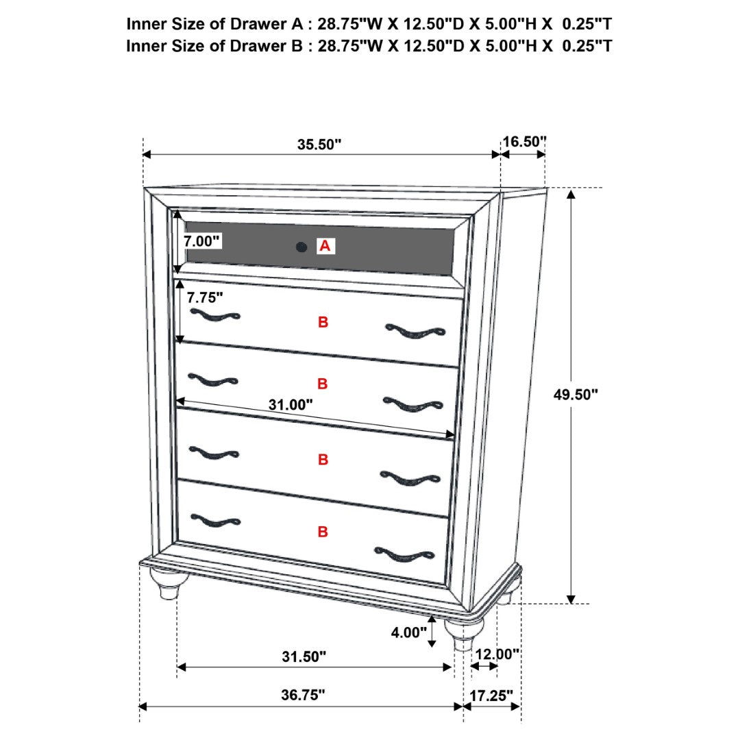 - Includes: One (1) chest of drawers — ready to anchor your bedroom ensemble.