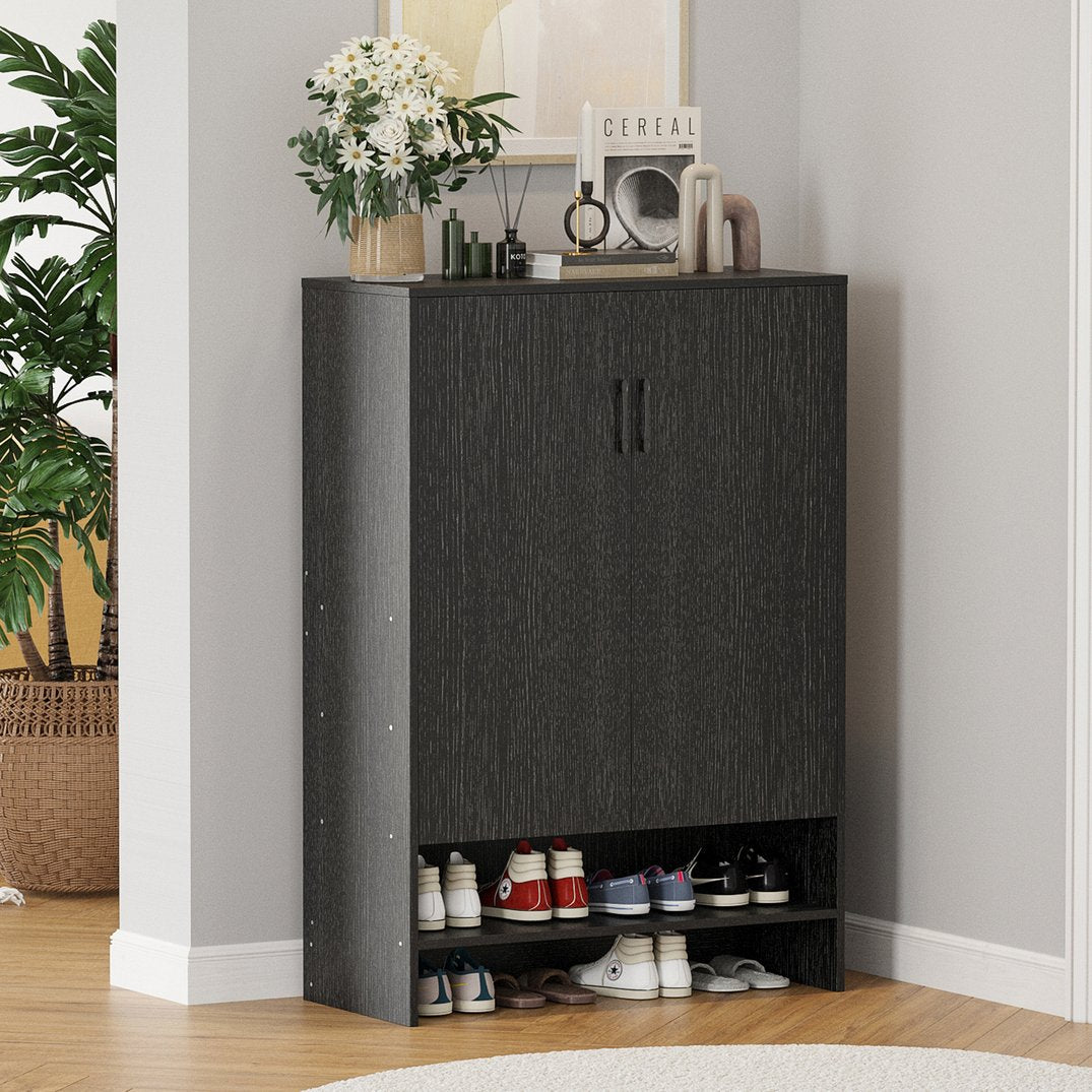Keep your entryway, hallway, or living room tidy without sacrificing style. This farmhouse-inspired shoe cabinet combines a compact footprint with generous, adjustable storage so you can neatly stow everyday sneakers, tall boots, slippers and more while maintaining a clean, organized look. Built for stability and everyday use, the cabinet’s black finish and barn-door detailing provide rustic charm that complements modern interiors.