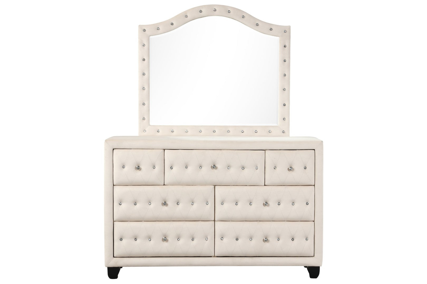 Elevate your bedroom with a contemporary dresser that blends luxurious details and everyday functionality. Upholstered in cream velvet and finished with crystal-tufted accents, this seven-drawer dresser offers generous storage and refined style to organize clothing, cosmetics, and jewelry while enhancing your room's décor.