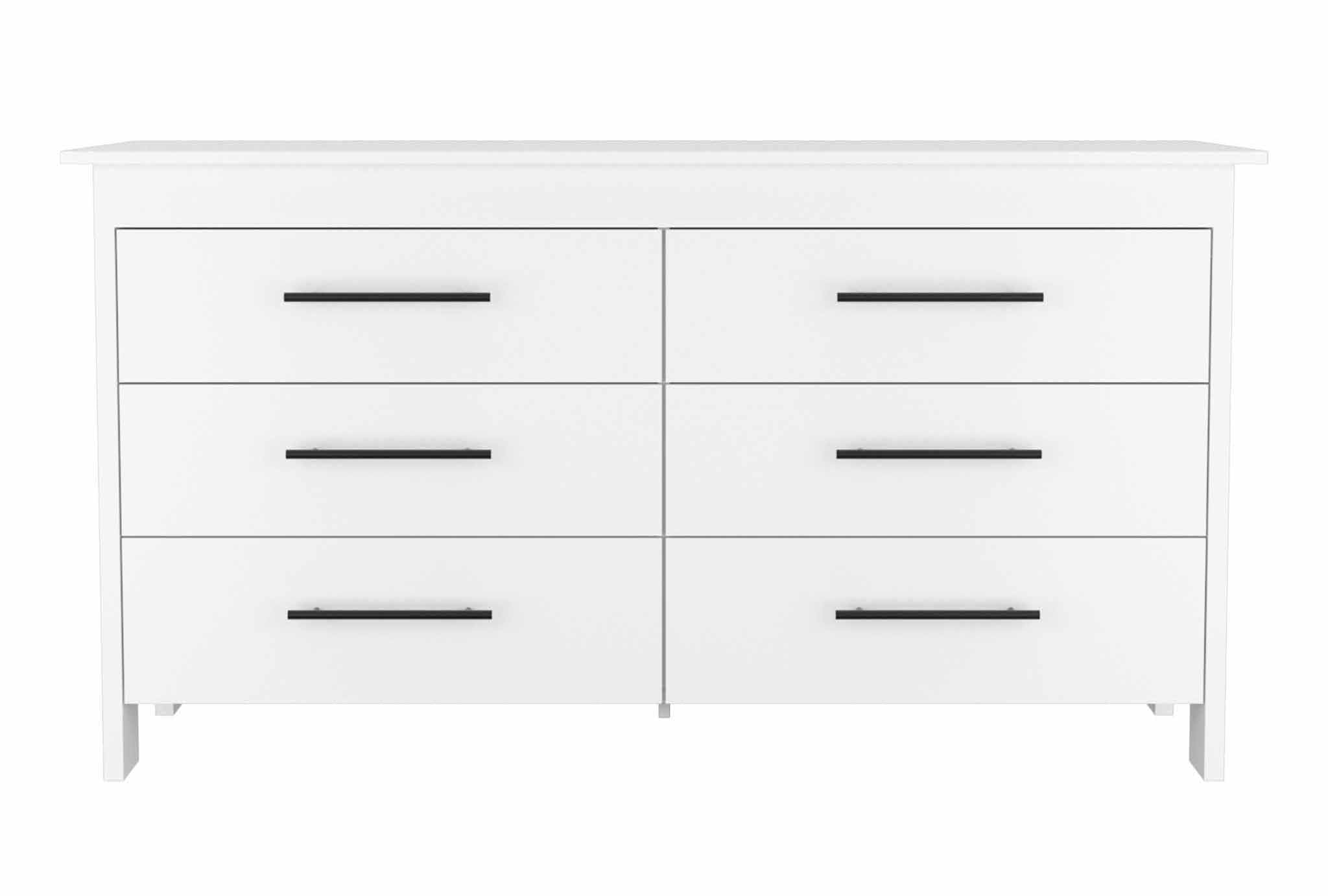 Bright, versatile, and thoughtfully designed, this six-drawer rectangular dresser brings clean-lined modern style and practical storage to bedrooms, guest rooms, or multipurpose spaces. The crisp white finish and contrasting black metal pulls create a contemporary look that pairs easily with a range of décor, while the roomy drawers keep clothing and essentials neatly organized.