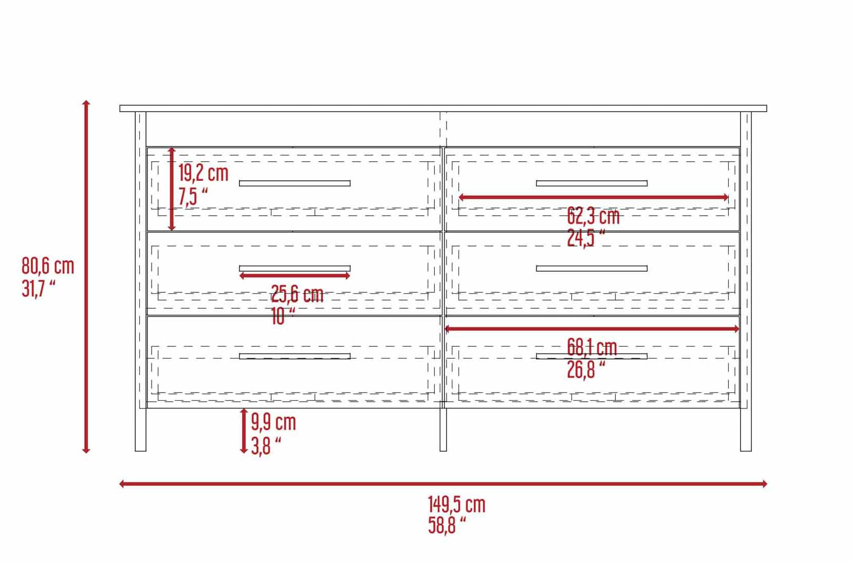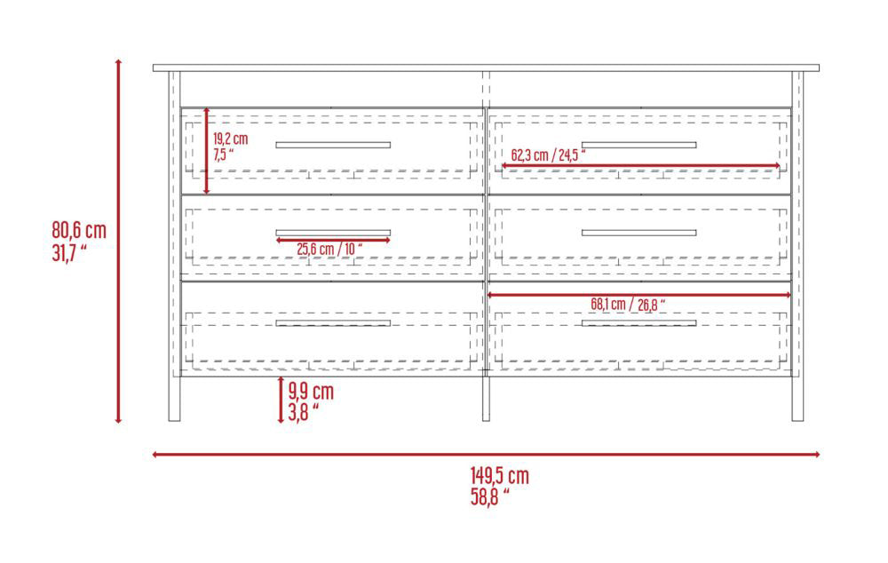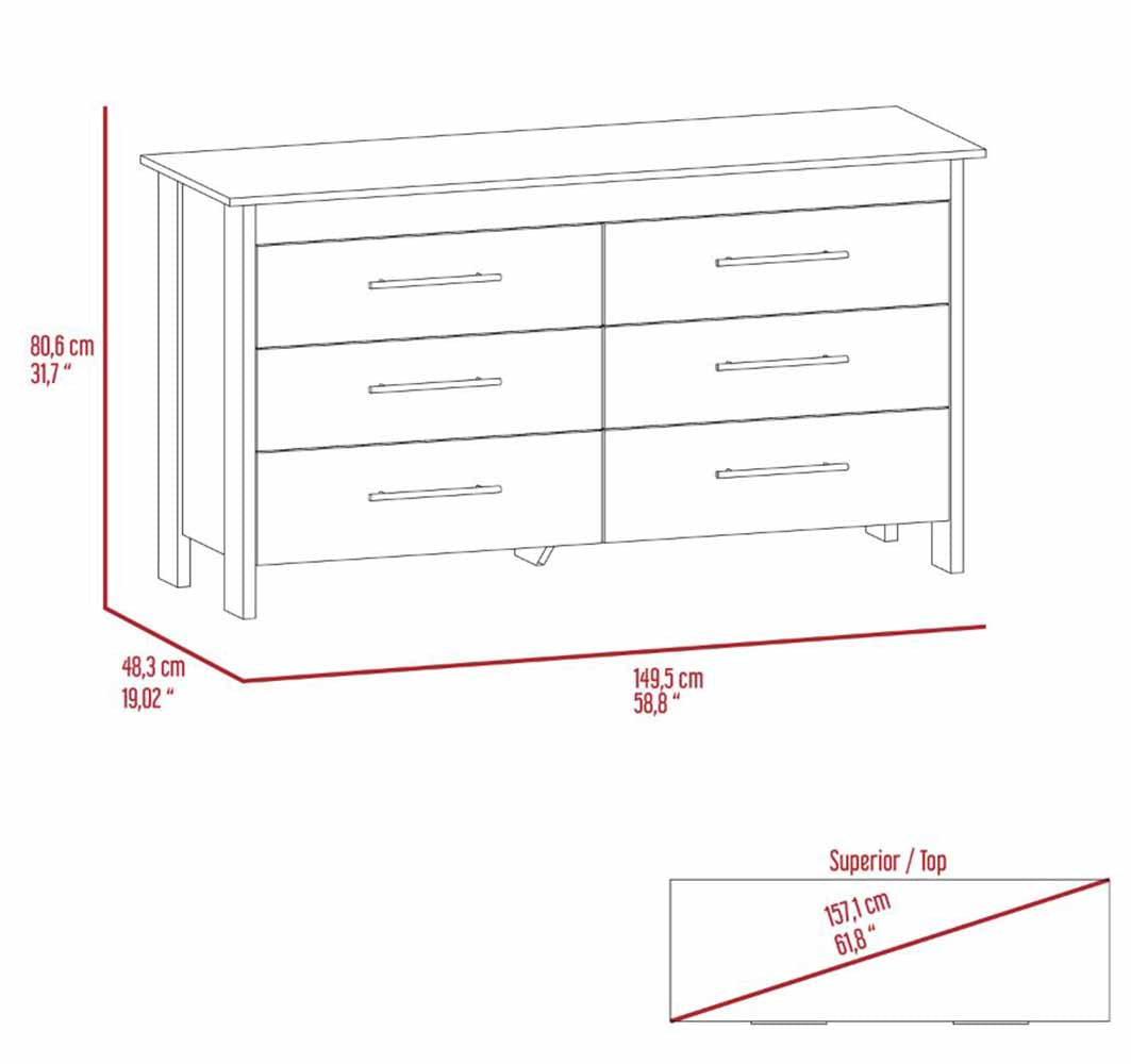 - Six spacious drawers