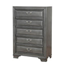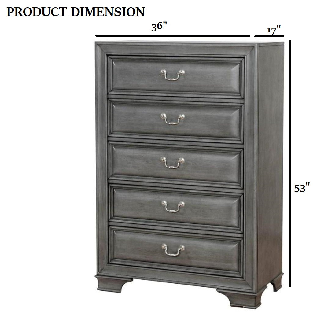 Bring timeless transitional style and smart storage to your bedroom with this elegant gray-finished chest. Designed to combine classic details—English dovetail drawers and antique-inspired hanging pulls—with practical functionality, it keeps clothing and personal items organized while elevating your room’s decor.