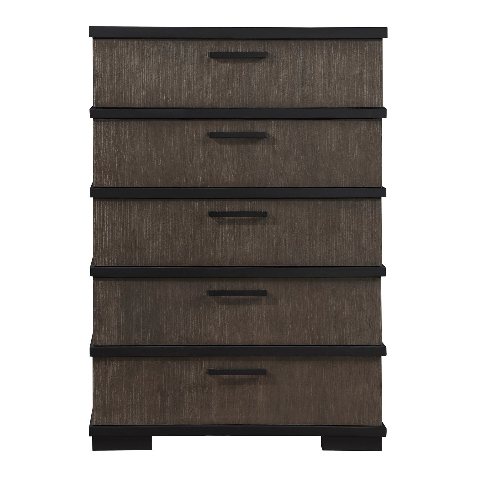 Introduce a striking blend of modern lines and industrial texture to your bedroom with this two-tone drawer chest. Engineered from oak veneer with a brown-gray and black finish, the piece offers bold contrast and practical storage with streamlined black bar hardware and a clean, contemporary silhouette that complements loft, urban, and transitional interiors.