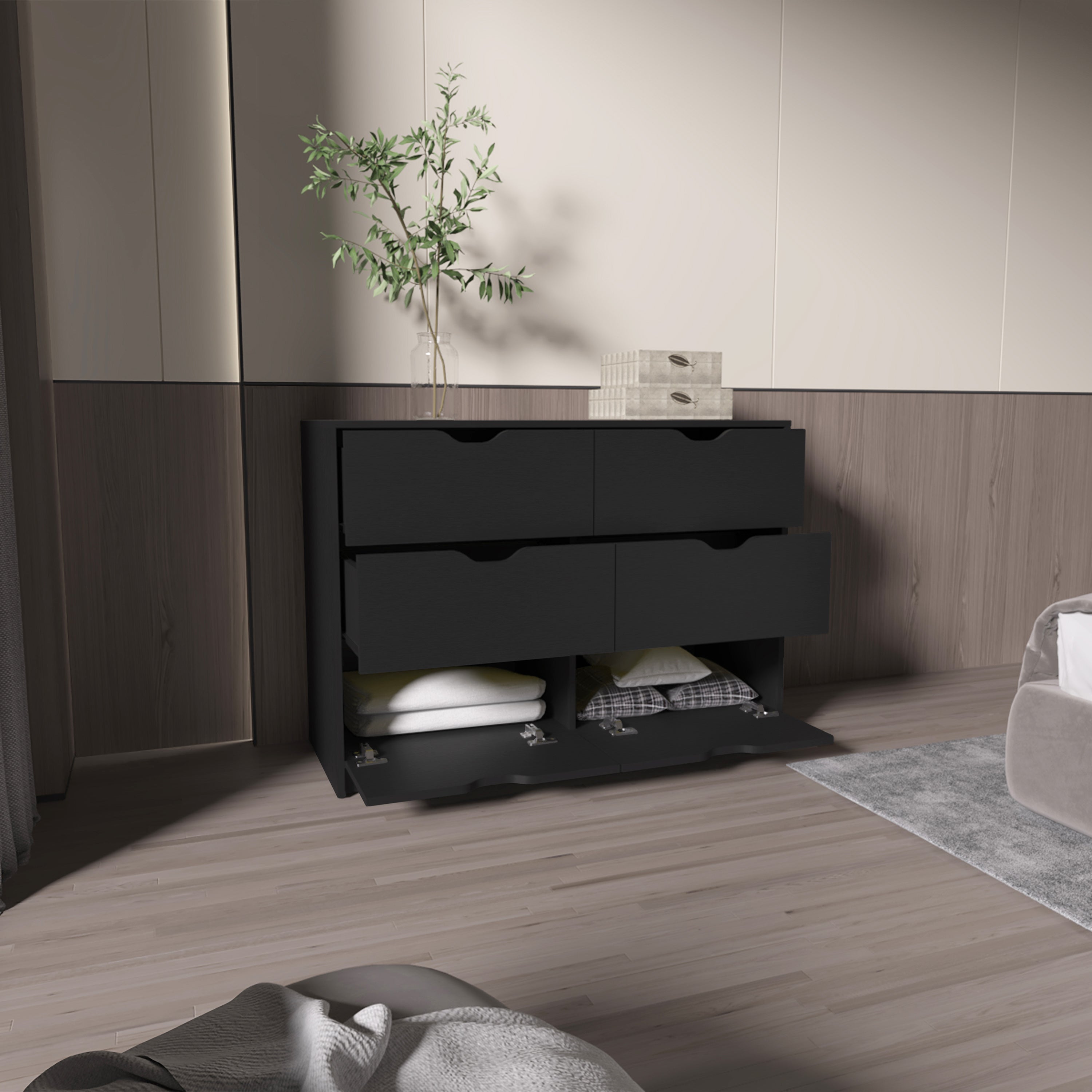 Elevate your bedroom with this Wenge 4-drawer dresser — a sleek, modern storage piece that blends refined style with everyday functionality. Thoughtfully designed for organized living, it offers generous drawer space, additional cabinet storage, and a durable top surface ideal for decor or daily essentials.