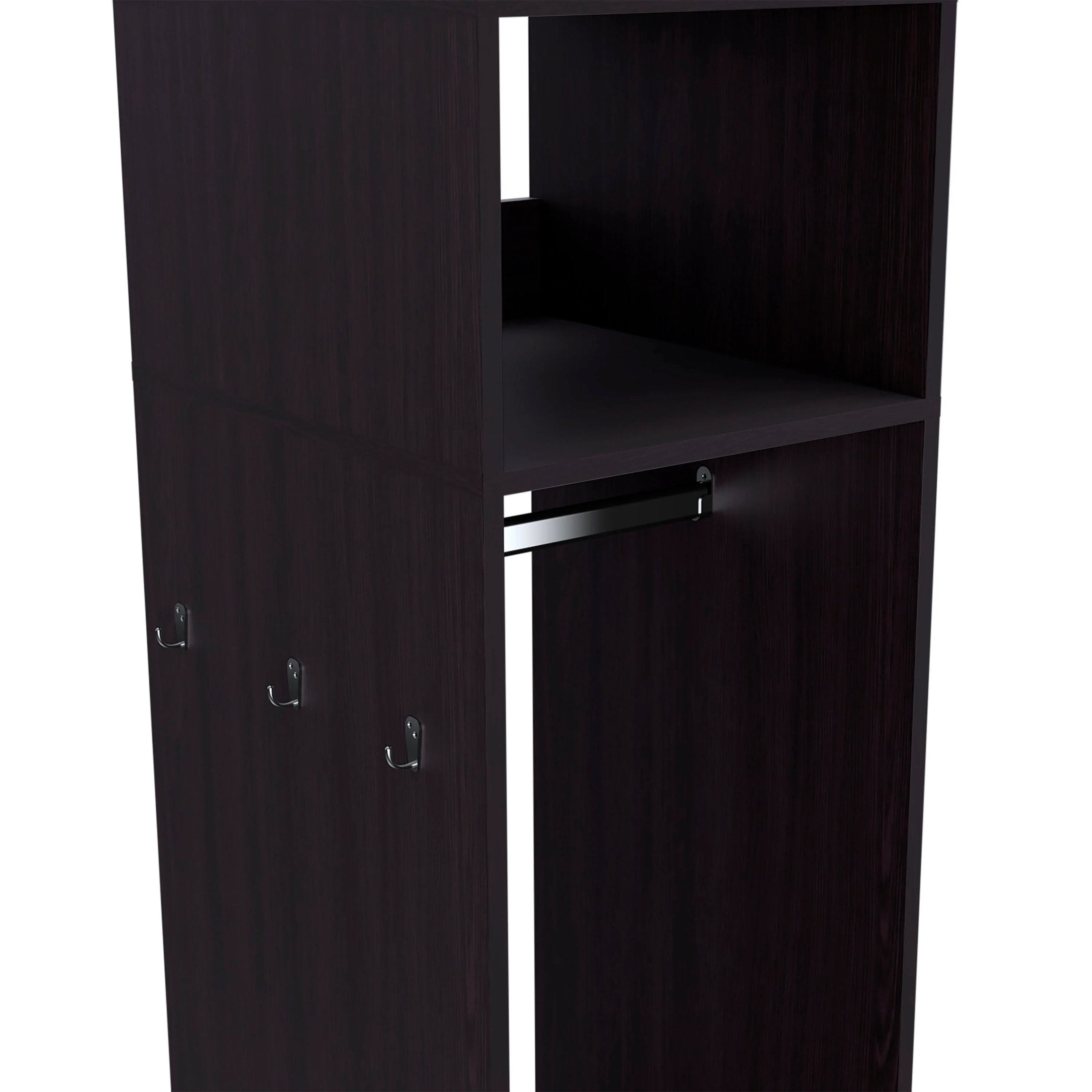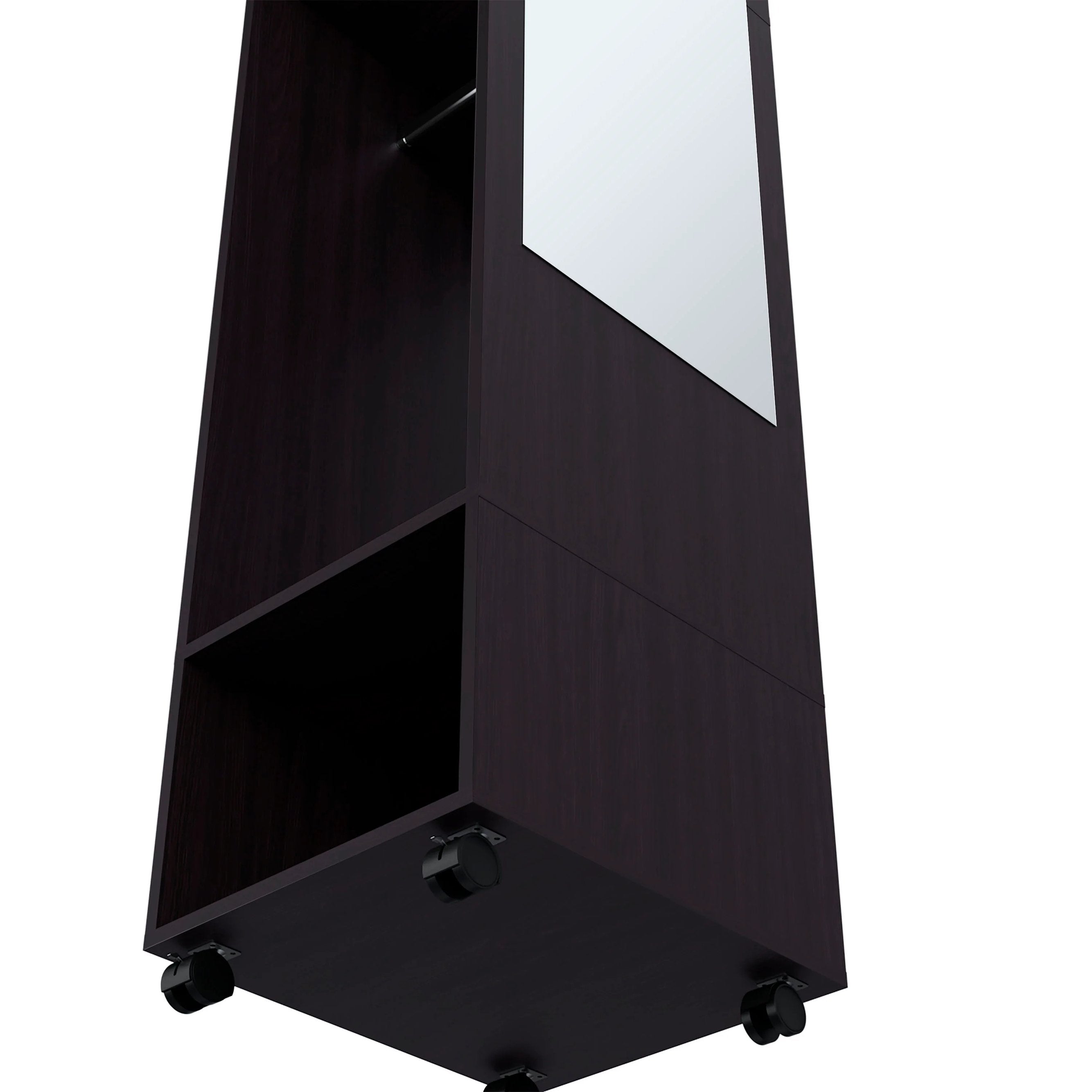 Bring organization and modern style to your bedroom or dressing area with this compact wenge wardrobe. Thoughtfully designed with a full-height mirror and open shelving, it keeps clothing, shoes, and accessories tidy while the rolling casters make repositioning and cleaning effortless. The rich wenge finish adds warmth and a contemporary edge to any decor.